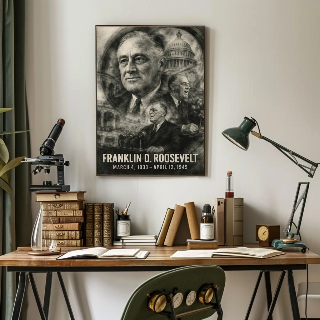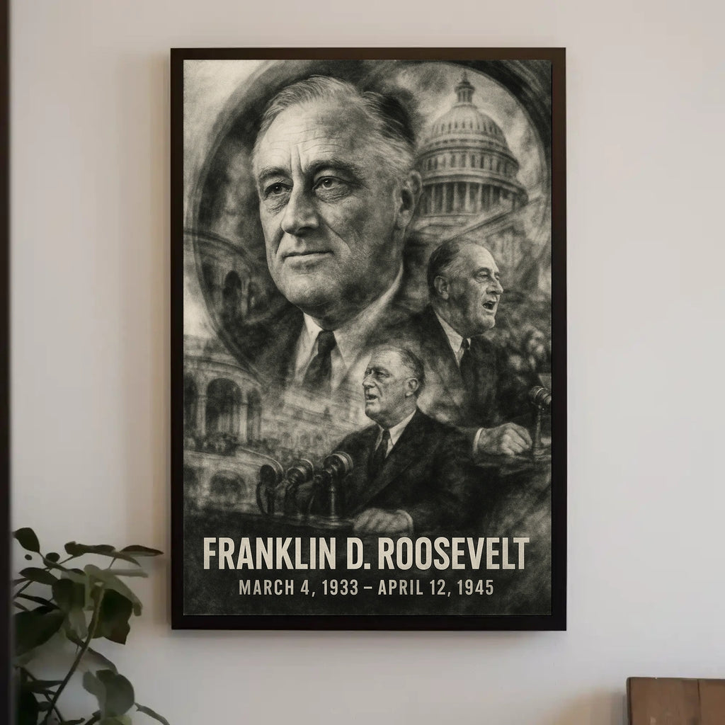 Add a touch of timeless elegance to your decor with this president-themed masterpiece. Whether you’re decorating a study, classroom, or living area, this poster pairs beautifully with other vintage and history-focused pieces to celebrate the legacy of Franklin D. Roosevelt.