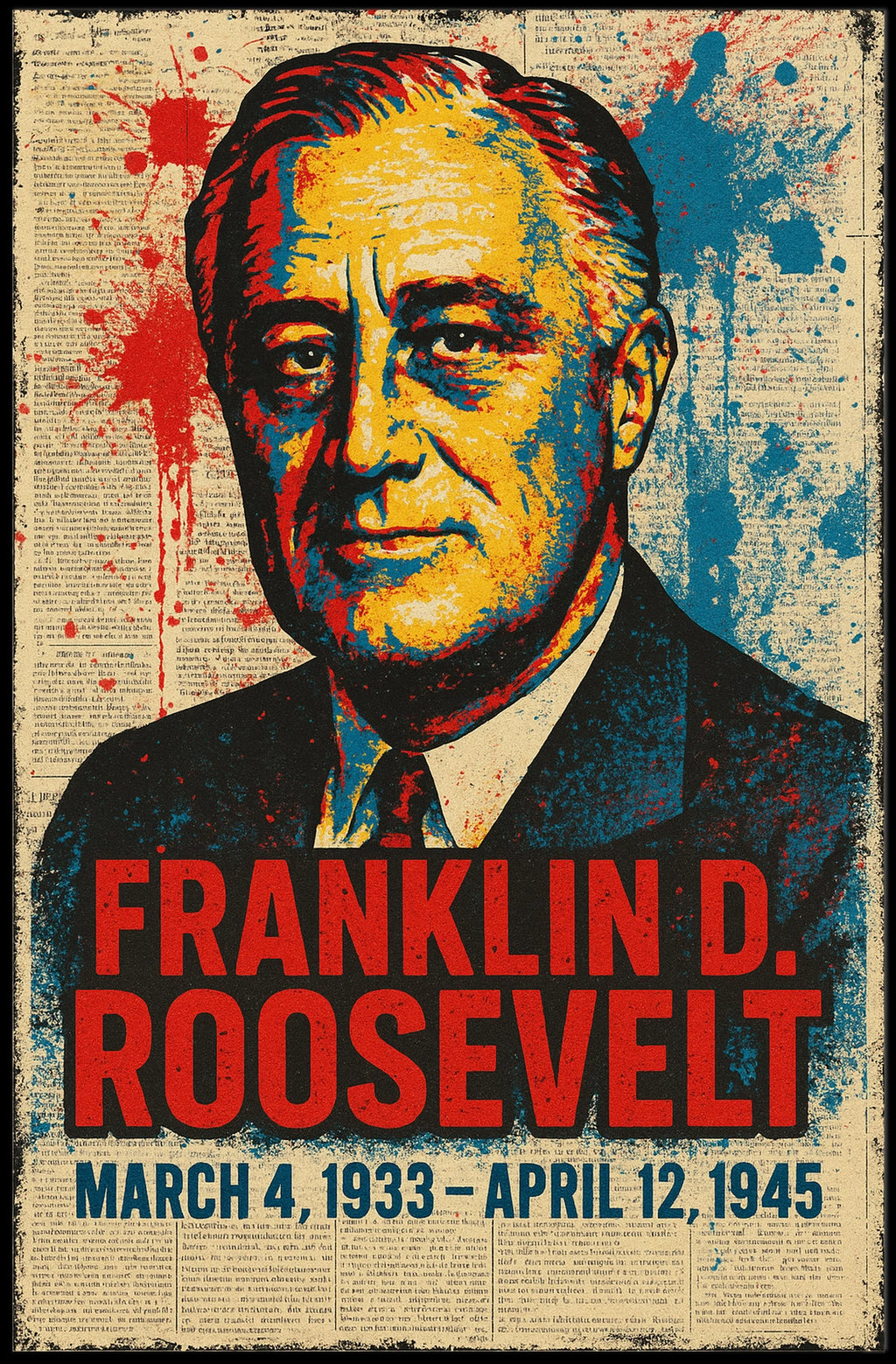Celebrate the beauty of Franklin D. Roosevelt, the 32nd President of the United States, with this Street Art Mashup Poster—where classic portraiture meets urban energy. This timeless wall art is designed to capture its unique appeal, perfect for collectors, enthusiasts, or anyone who wants to bring meaning and inspiration into their space.