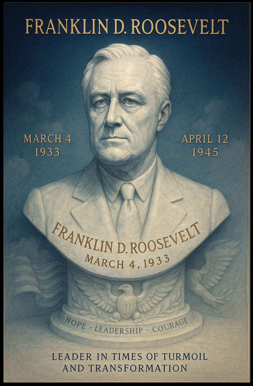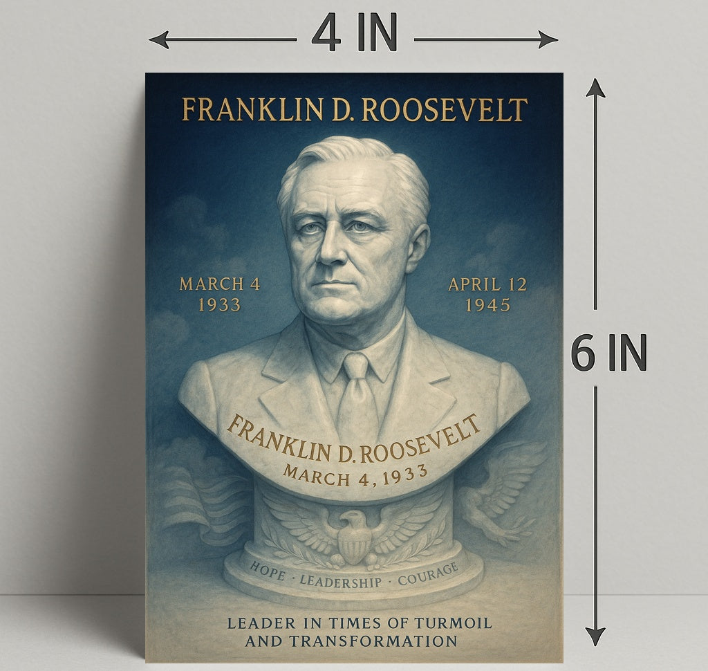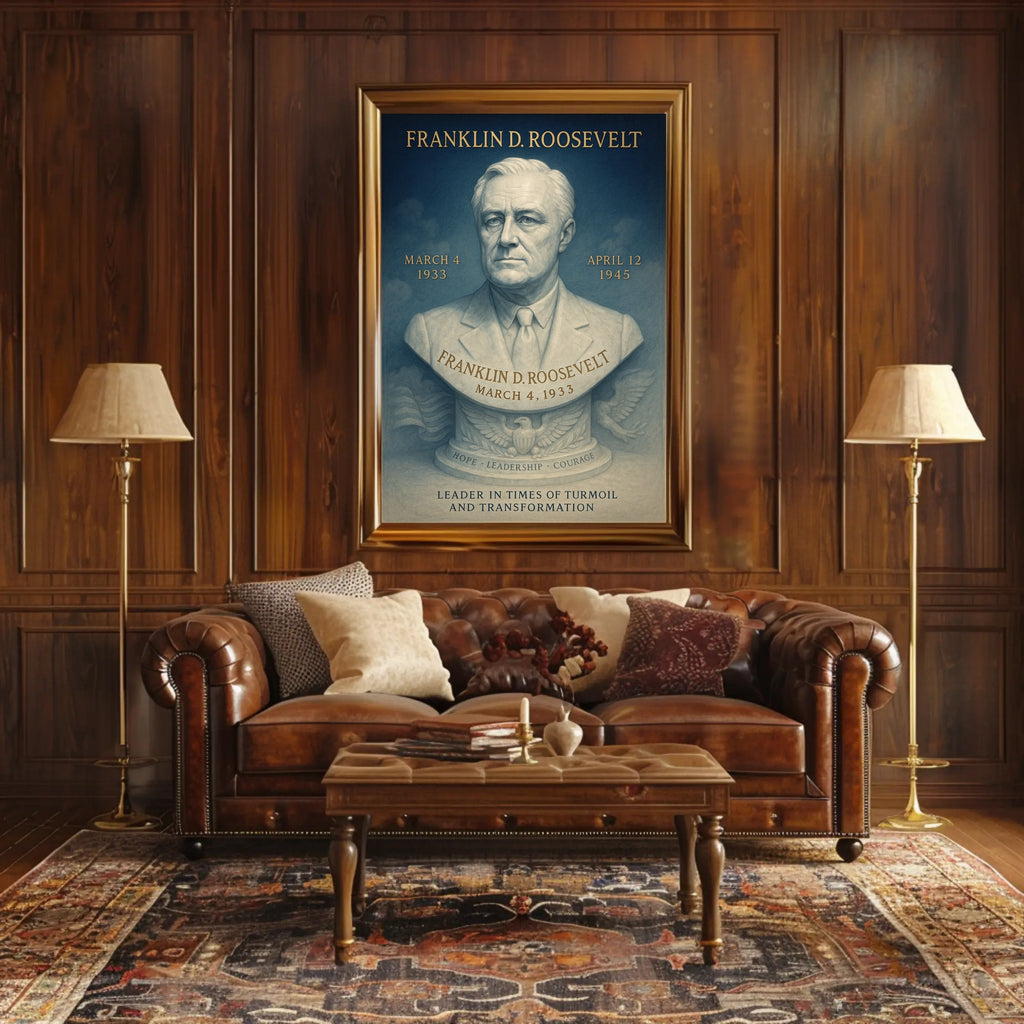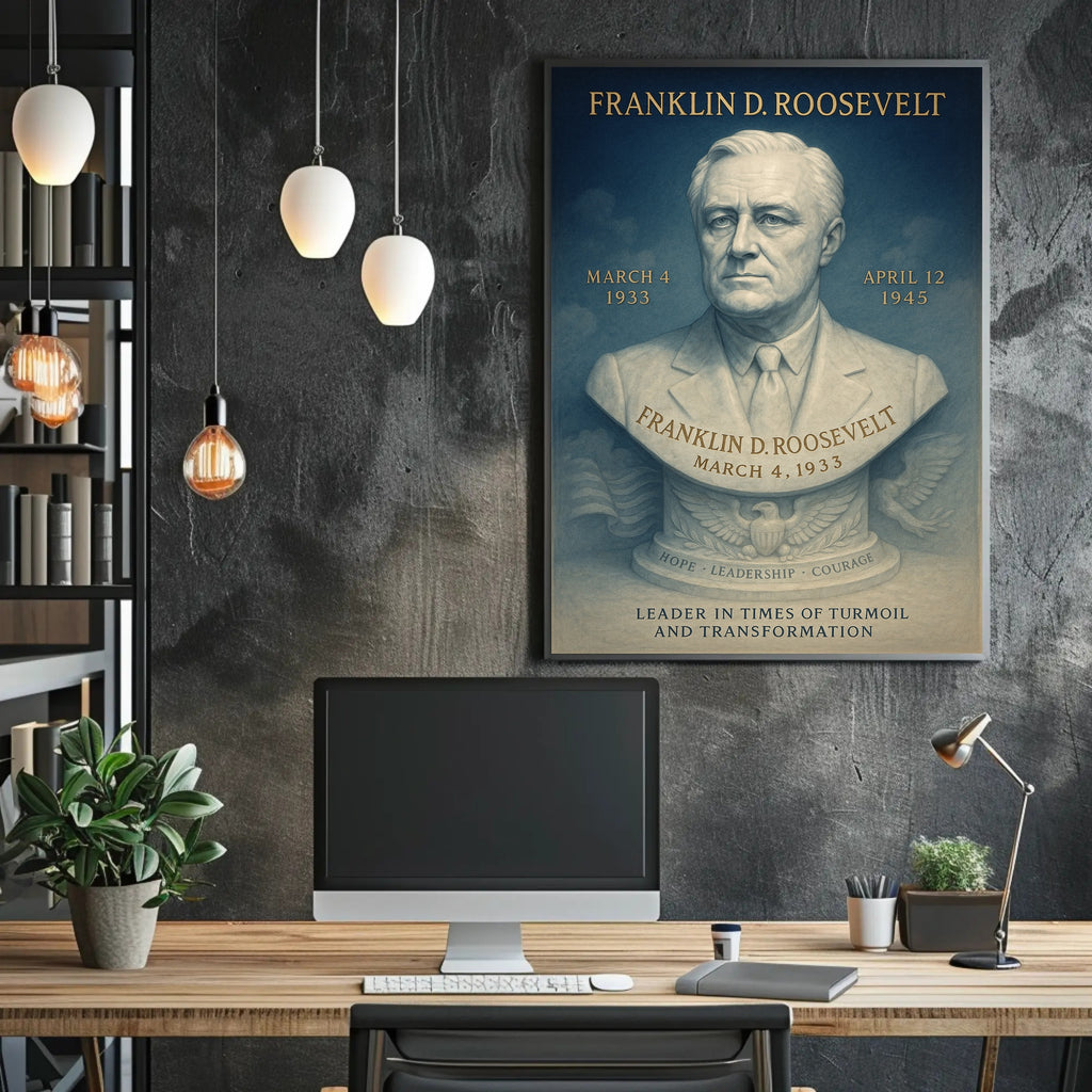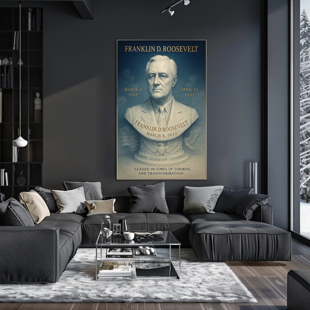 Enhance your living space with the captivating Franklin D. Roosevelt Poster. This stunning art print not only showcases the iconic figure of FDR but also adds a charming touch to any room. Inspired by real-world scenery, this poster is perfect for decor lovers and those with a spirit of wanderlust. Elevate your home or office with a piece that symbolizes hope, leadership, and courage.
