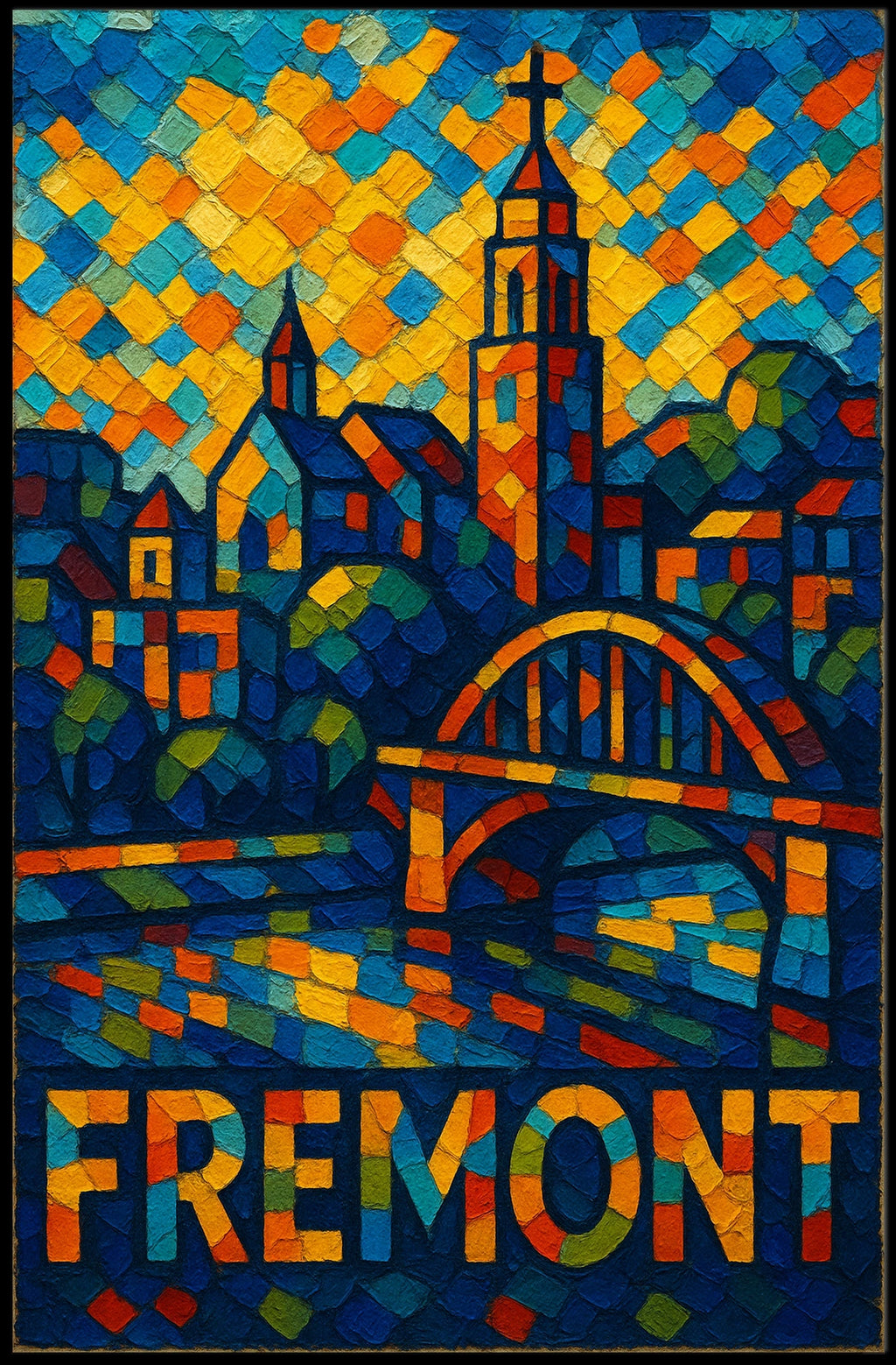 - Detailed design highlighting Fremont's iconic skyline and vibrant color