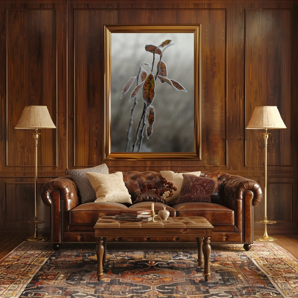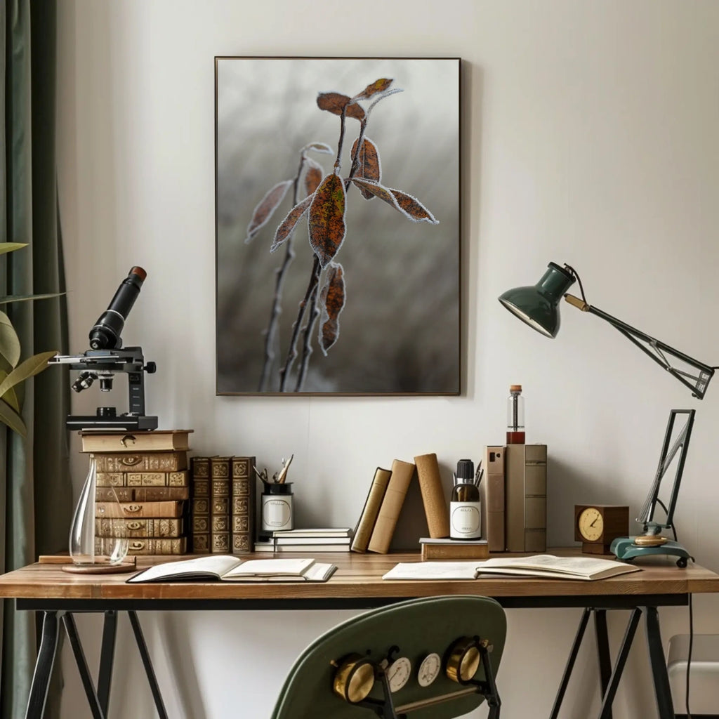 Printed to endure and designed to complement any space—from living rooms and study nooks to classrooms and offices—this nature poster brings the tranquil beauty of the outdoors inside. Whether you’re decorating for autumn, transitioning to winter, or simply drawn to the textures of frost and leaf, this piece offers a timeless touch of serenity and inspiration.