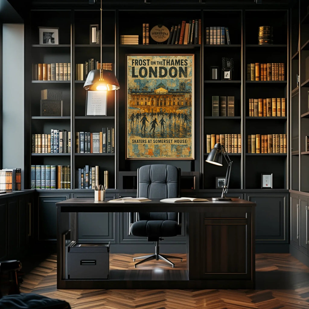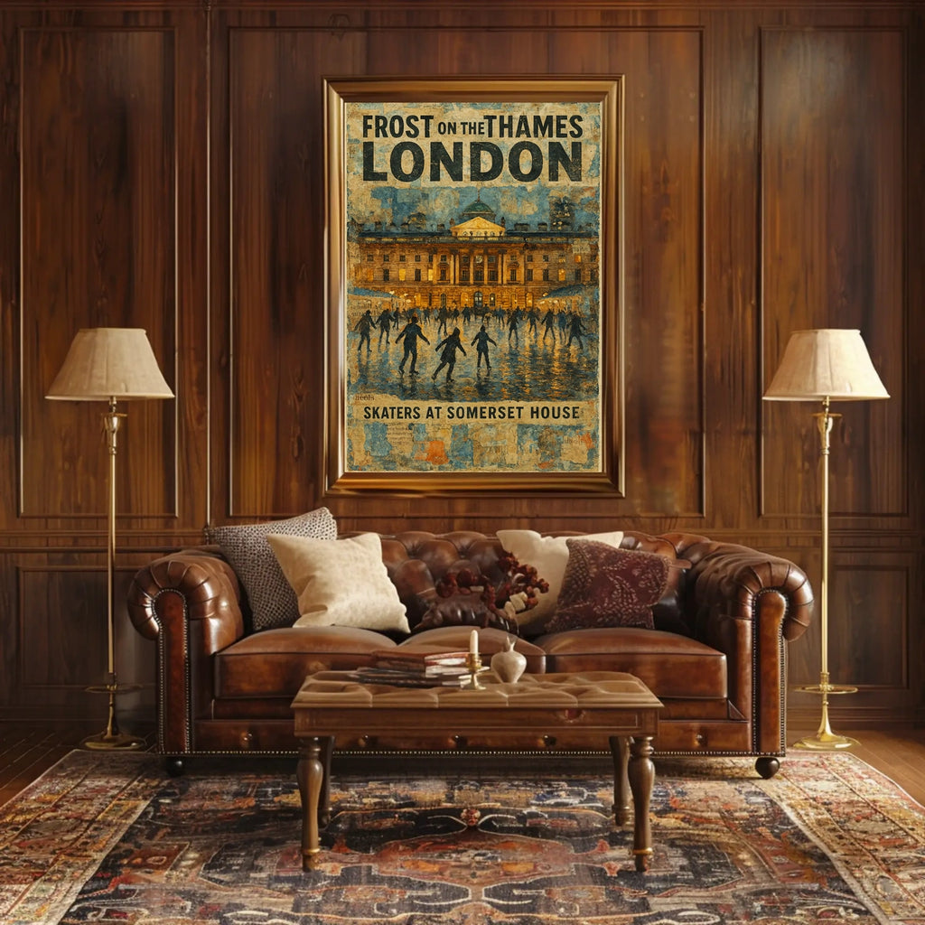 - Printed with precision and made to inspire, this artwork is more than decoration—it’s a conversation piece that connects history, culture, and style. Bring Frost on the Thames Skaters at Somerset House into your home, classroom, or office today and let your walls tell a powerful story.