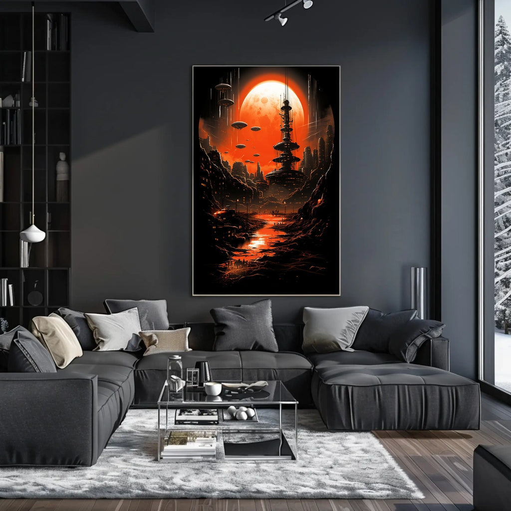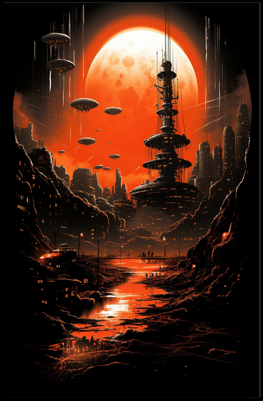 Immerse your space in a neon-kissed skyline with the Futuristic Cityscape Under a Red Moon Poster. This bold art print blends urban ambition with nocturnal drama, turning any wall into a conversation starter. Perfect for decor lovers and wanderlusters, it infuses rooms with sci‑fi charm and cinematic mood.