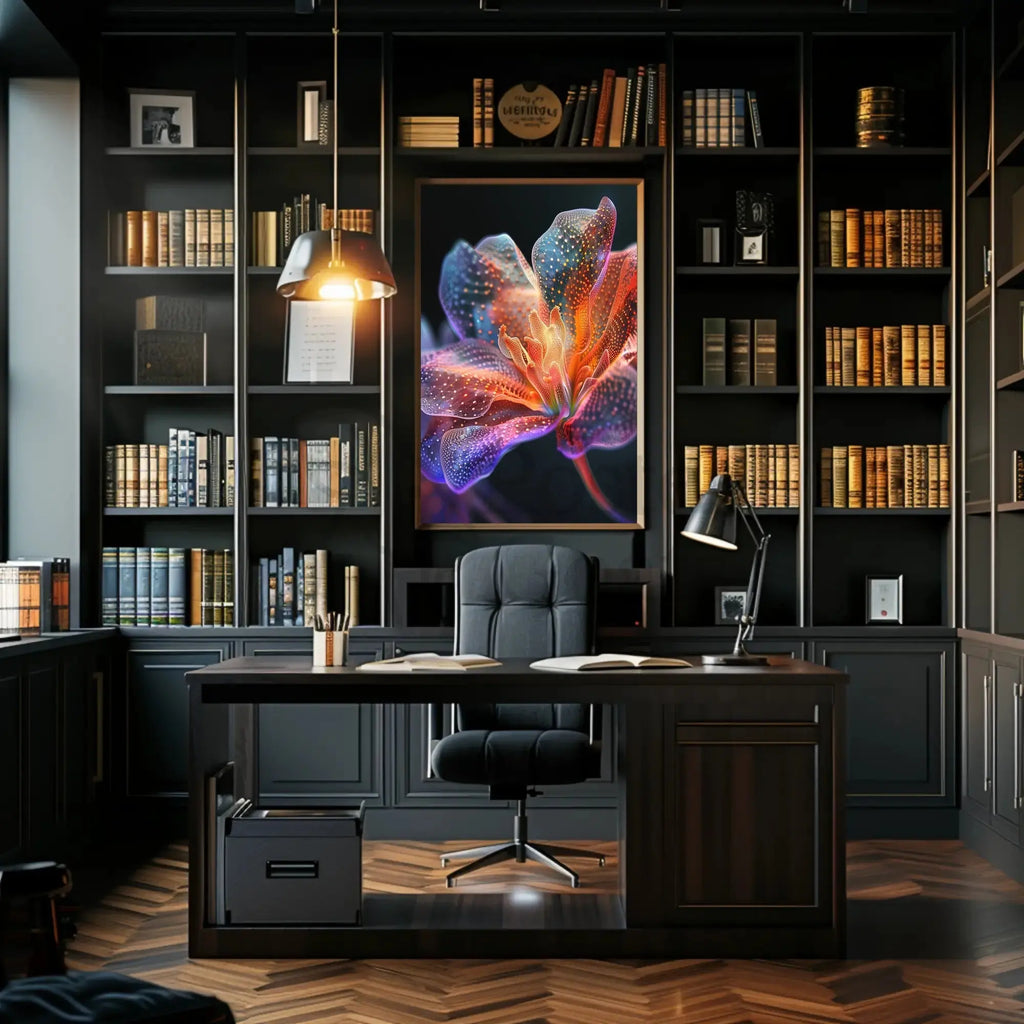 - Nature + high‑tech design: The piece blends organic flower form with digital patterns and sci‑fi aesthetics—perfect for contemporary wall art, sci‑fi decor, or high-tech home accents.