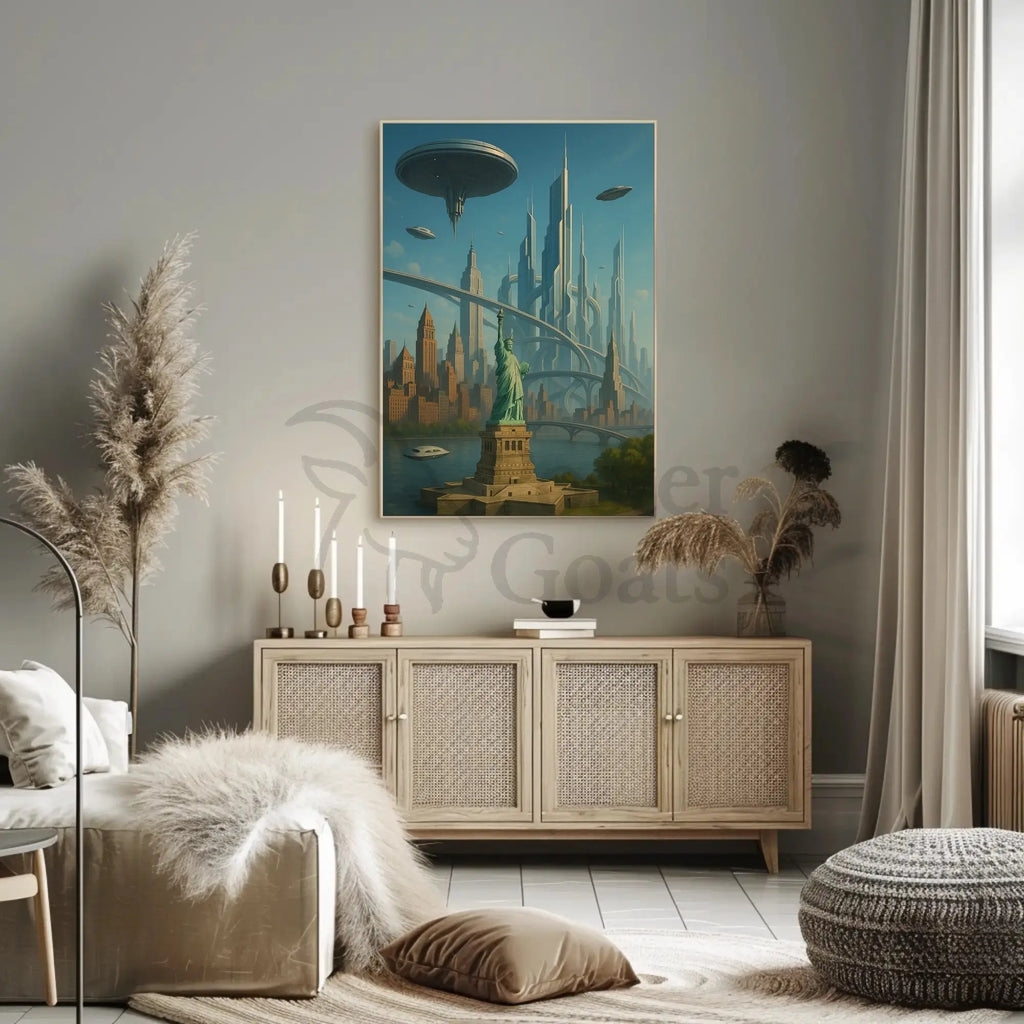 Add the Futuristic New York City Vision Sci‑Fi Poster to your collection today and transform any room into a futuristic landmark — order now and give your walls a visionary upgrade.