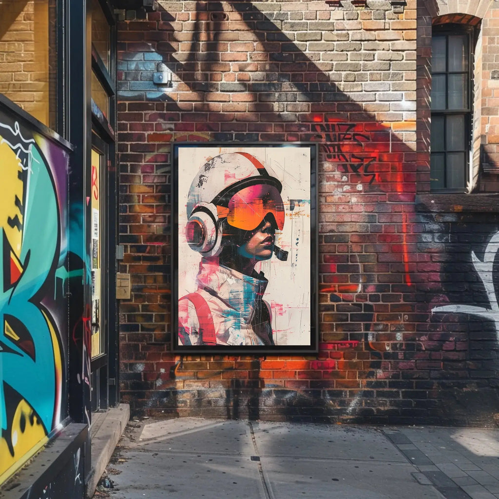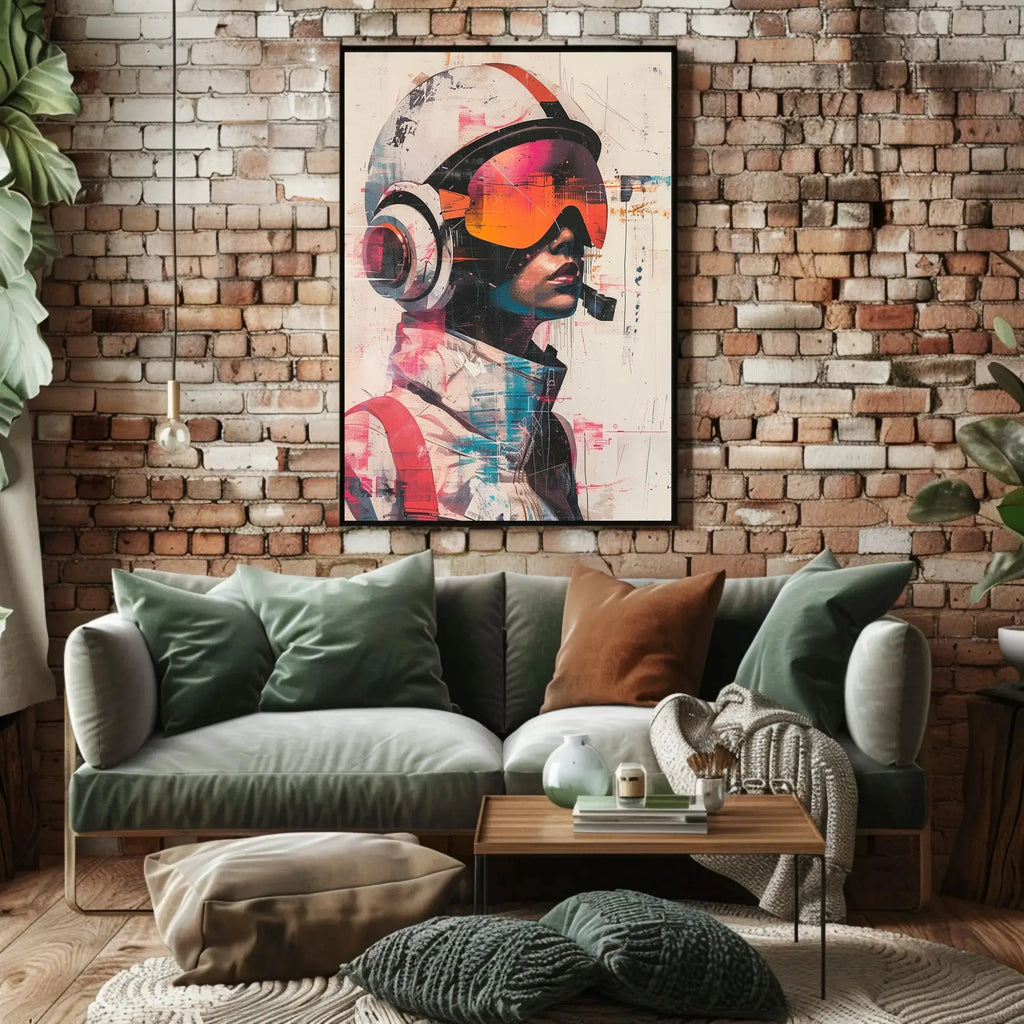 Immerse yourself in a world of advanced technology and creativity with our Futuristic Sci-Fi Character with Helmet Poster. This striking artwork features a distinctive character, complete with a sleek helmet and visor, reminiscent of a bold pilot or intrepid astronaut venturing into the unknown.