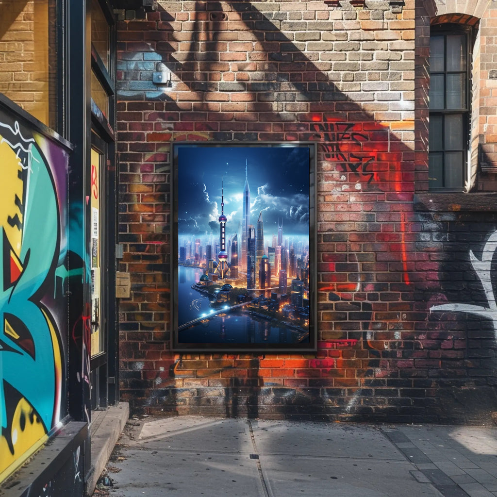 In summary, the Futuristic Skyline At Twilight Poster is not just a piece of art; it's an invitation to explore and dream. Elevate your space and inspire creativity with this magnificent print. Order yours today and bring the magic of twilight into your home!