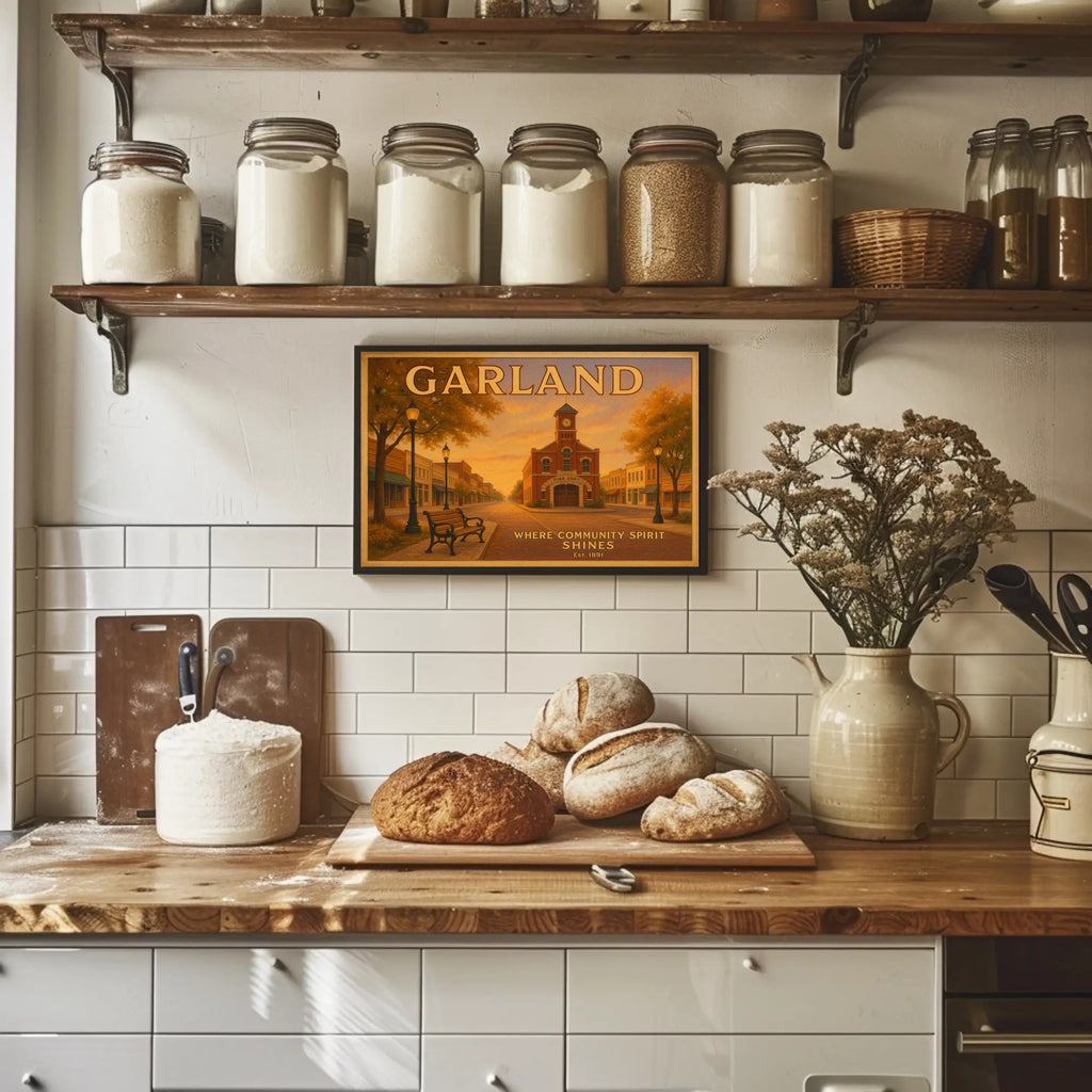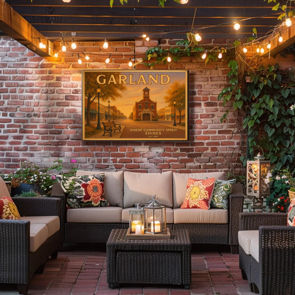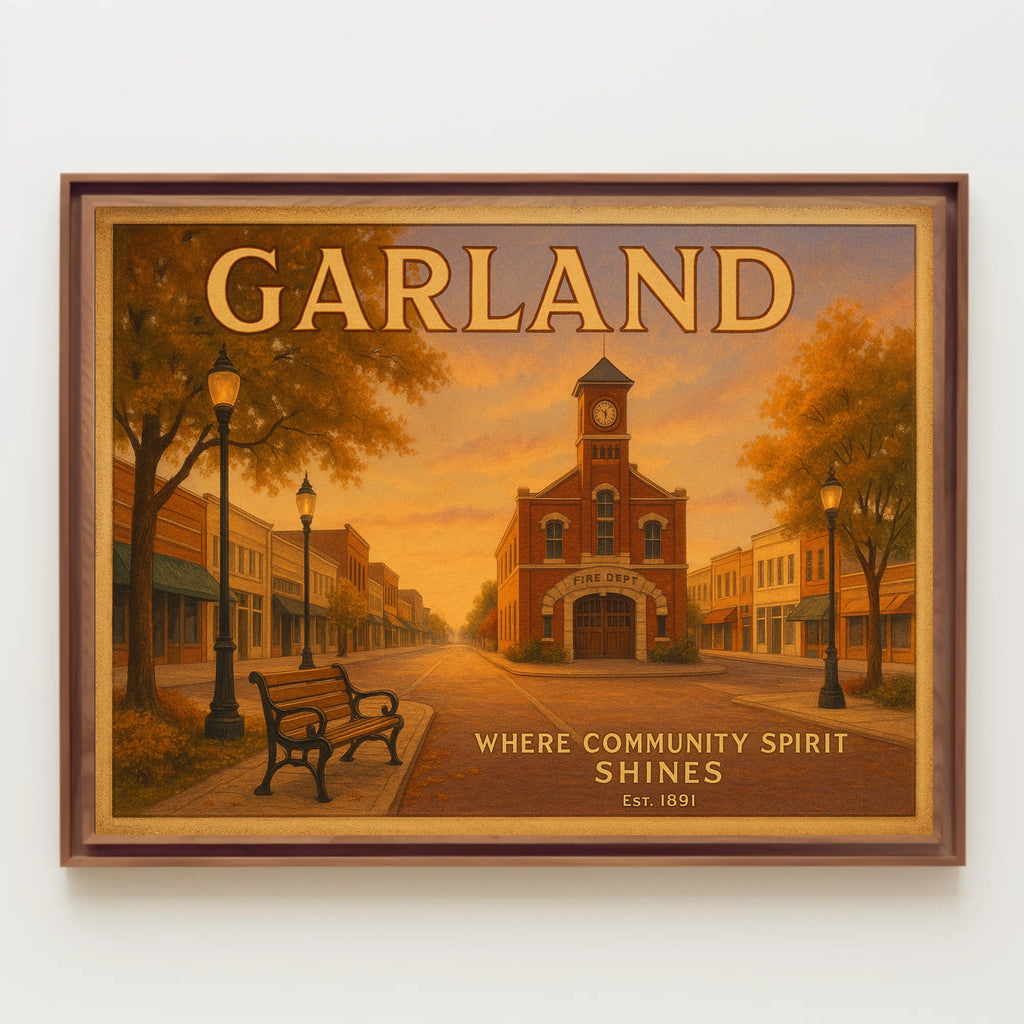 Celebrate community, history and timeless design — add the Garland Community Legacy Travel Poster by PosterGoat to your collection today and let a little hometown charm shine on your wall.