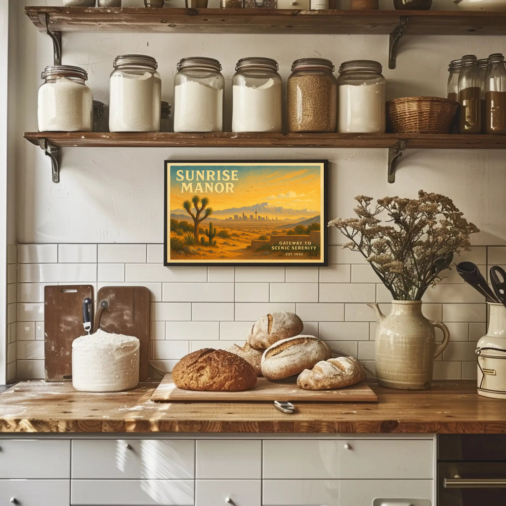 Why it works: The poster's golden sunrise palette and textured, retro finish make it an effortless focal point for living rooms, home offices, coffee bars, or entryways. Its balanced composition evokes both serenity and adventure, pairing beautifully with rustic, industrial, or mid-century décor.