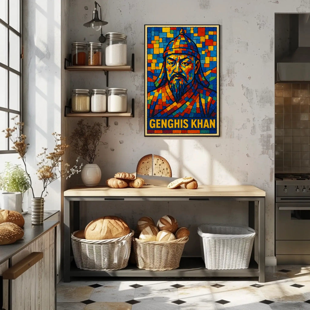 Genghis Khan Mosaic Portrait Poster blends historical presence with modern mosaic artistry, making it an ideal centerpiece for decor lovers and wanderlust spirits seeking a distinctive, scenic touch.
