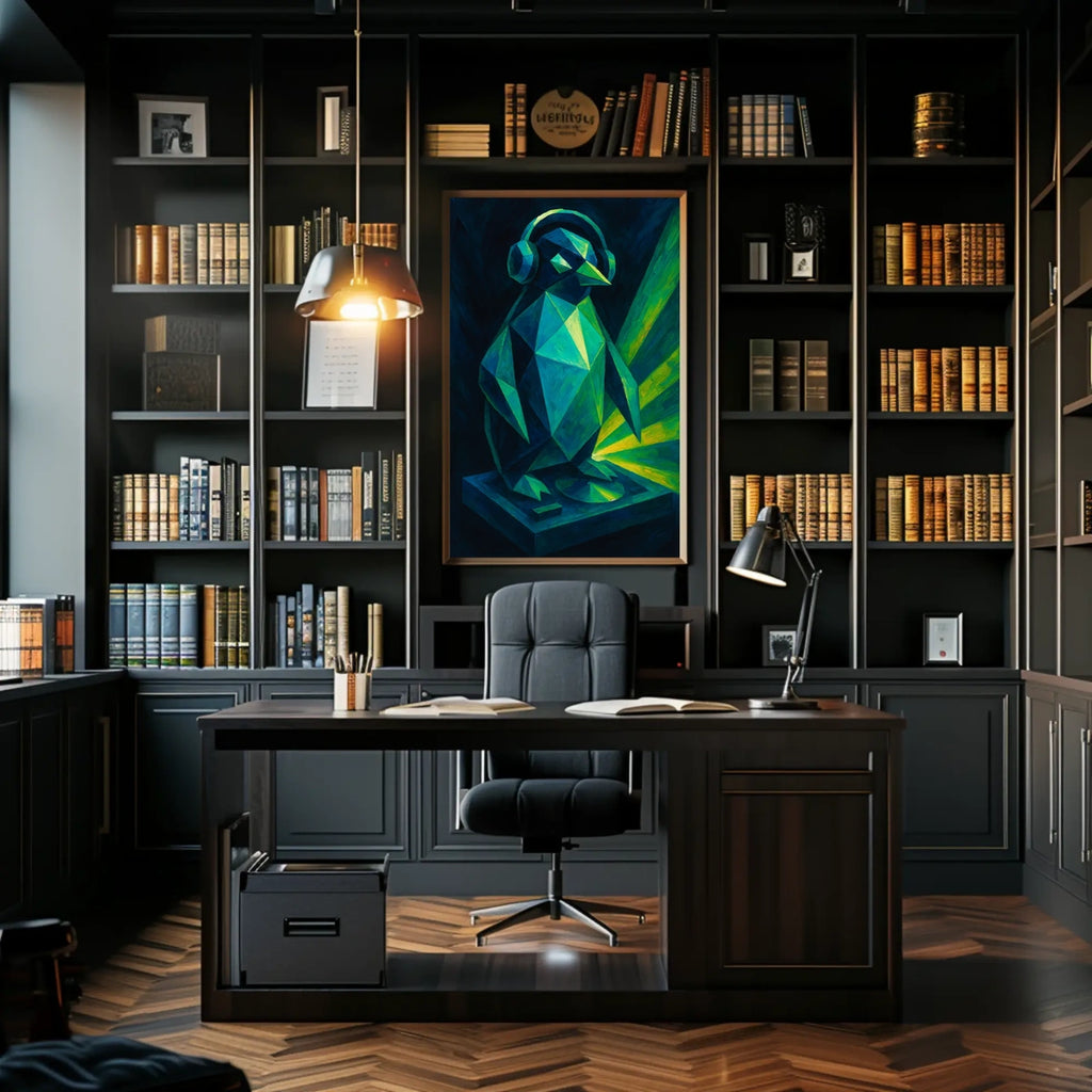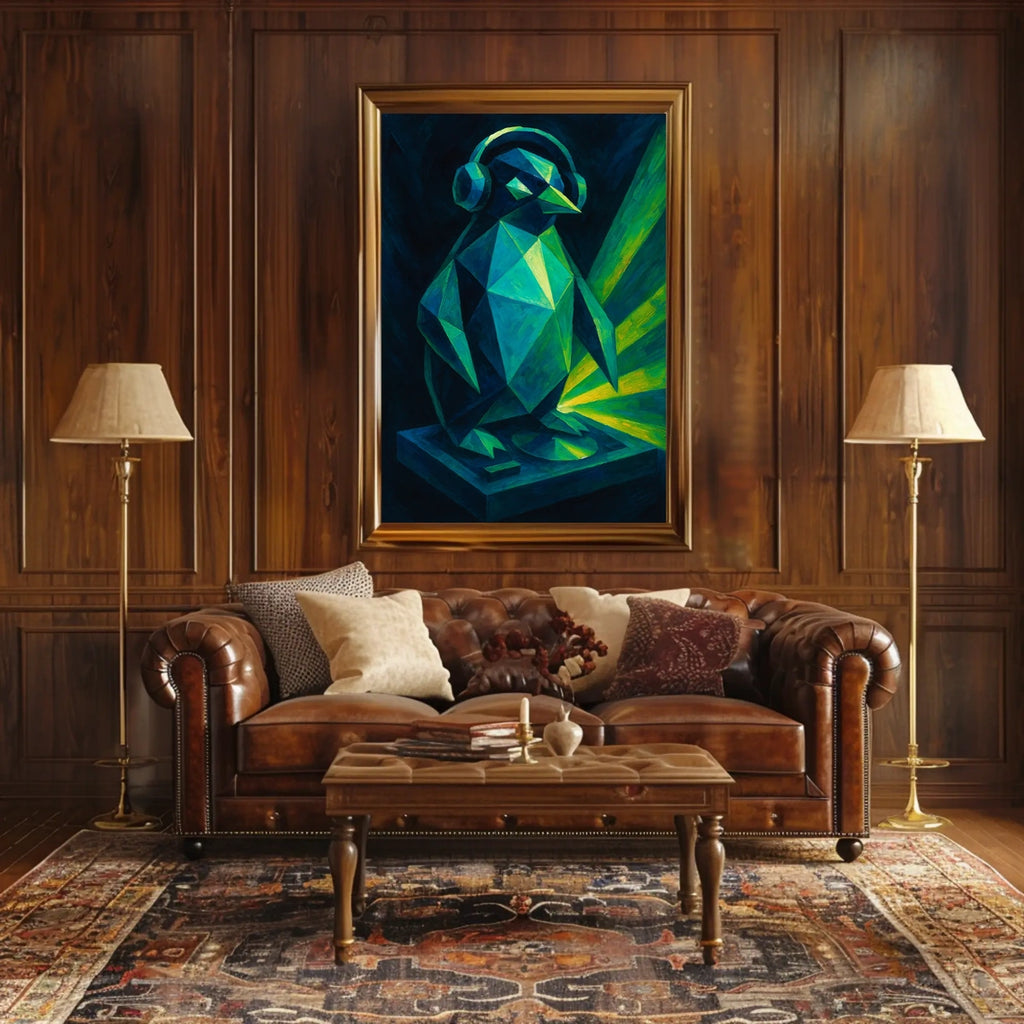 - Printed with precision and made to inspire, this artwork is more than decoration—it's a conversation piece that connects art, imagination, and style. Bring Geometric Penguin With Headphones Poster into your home, classroom, or office today and let your walls tell a powerful story.