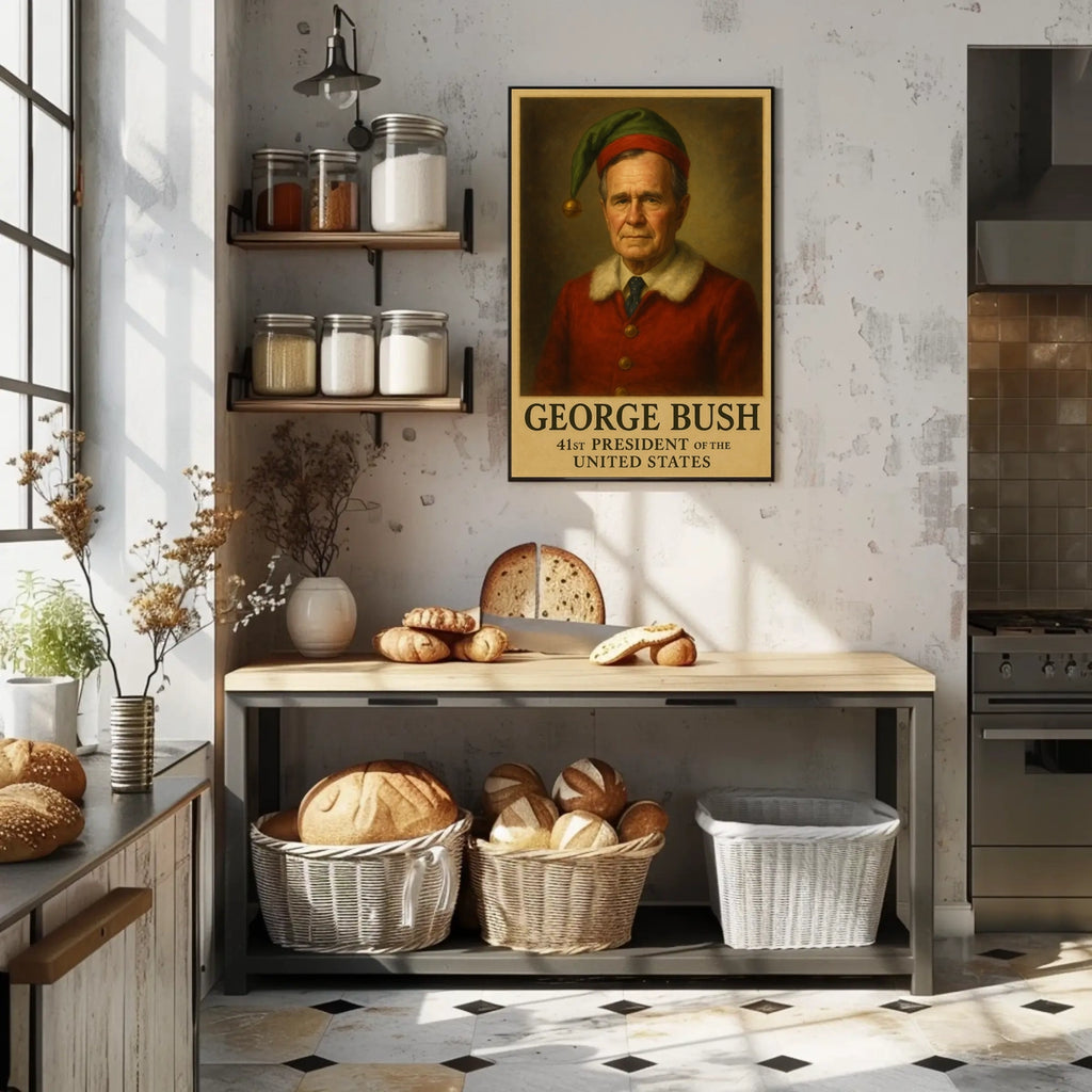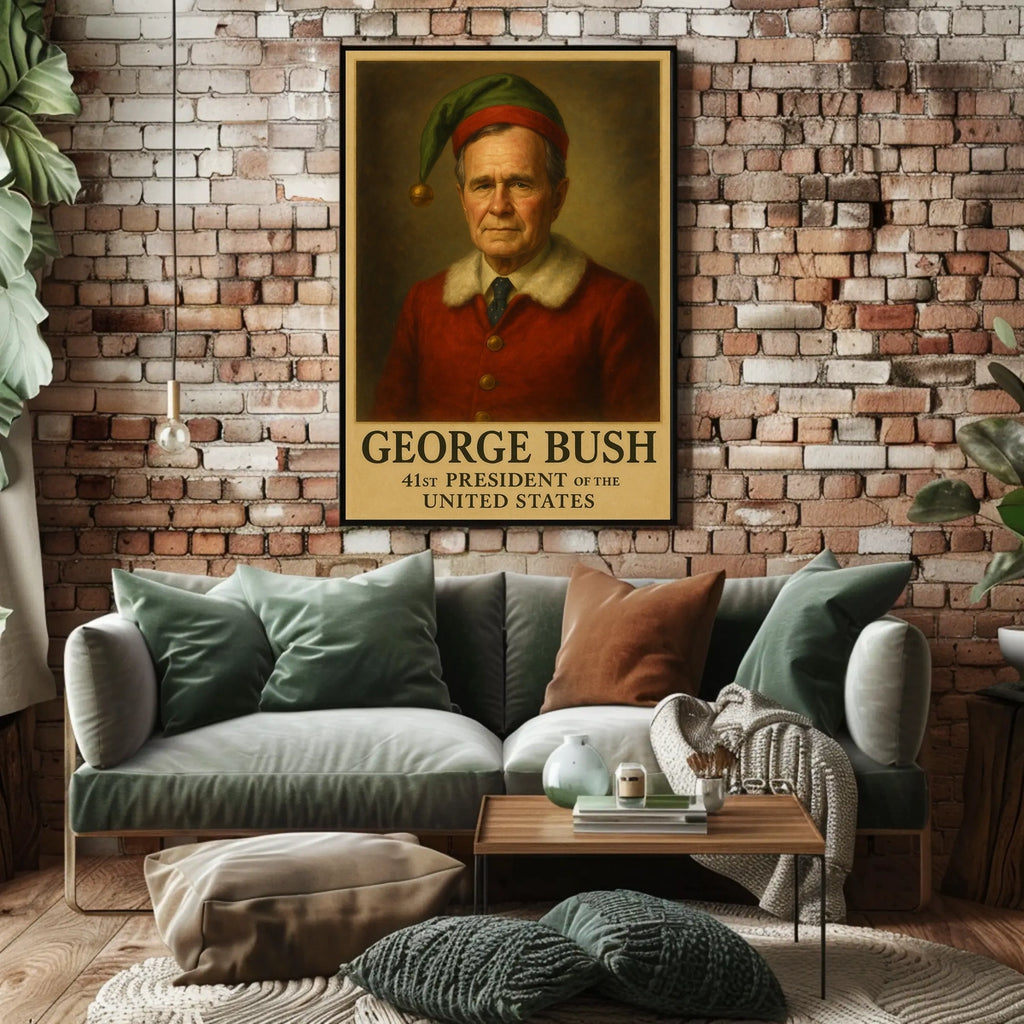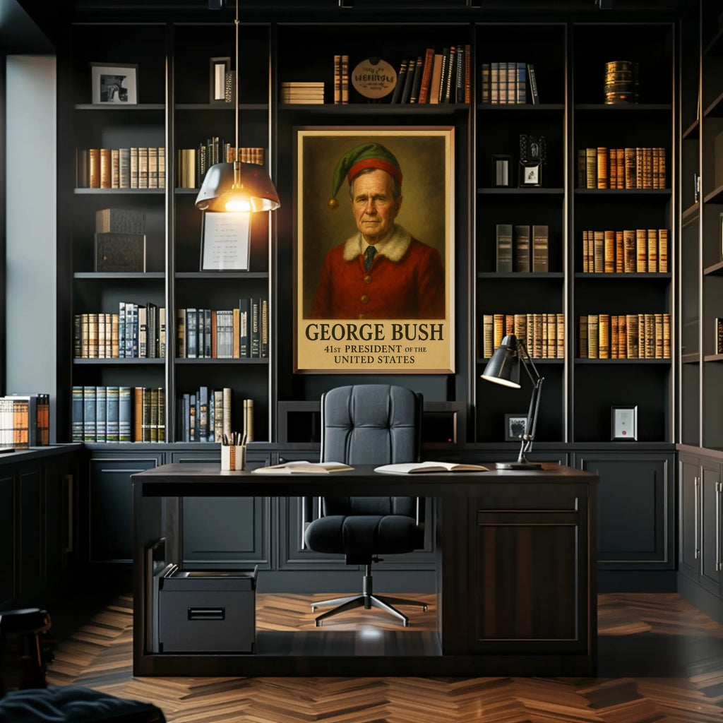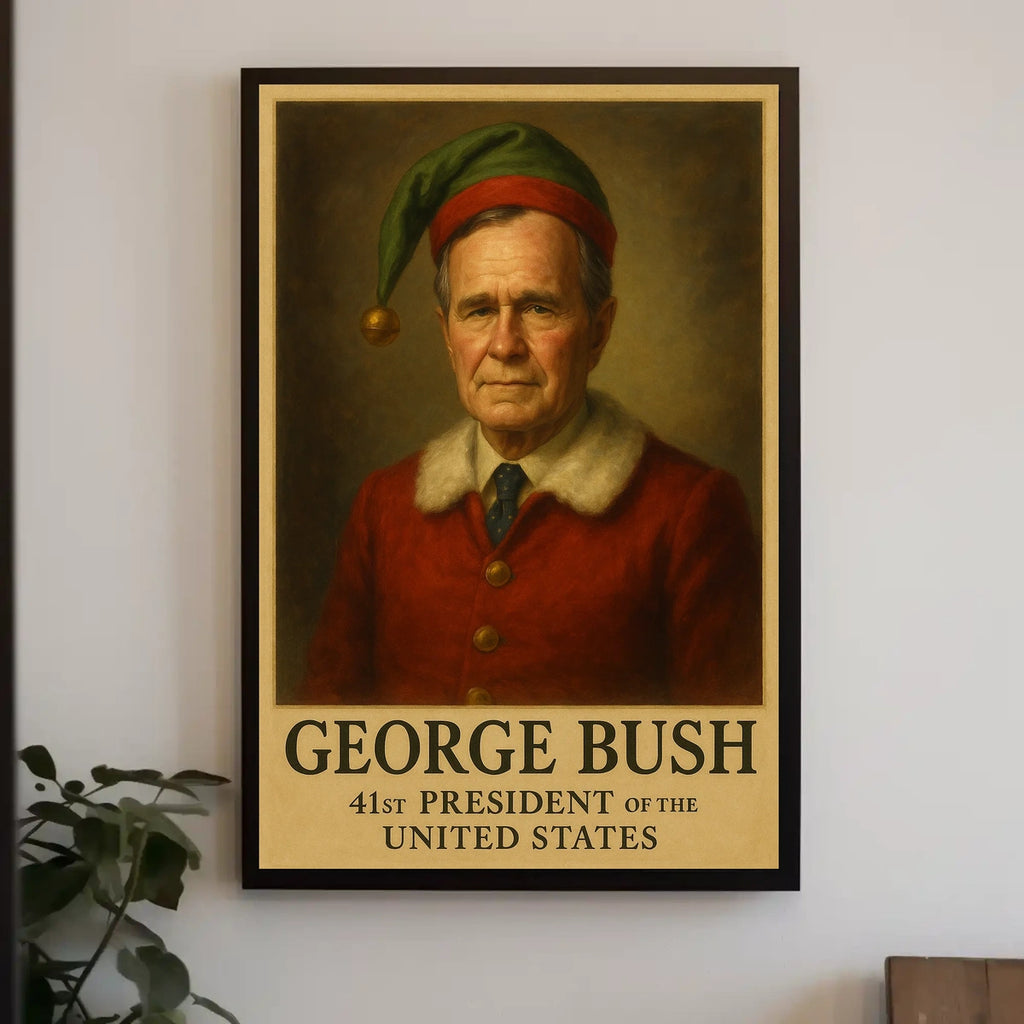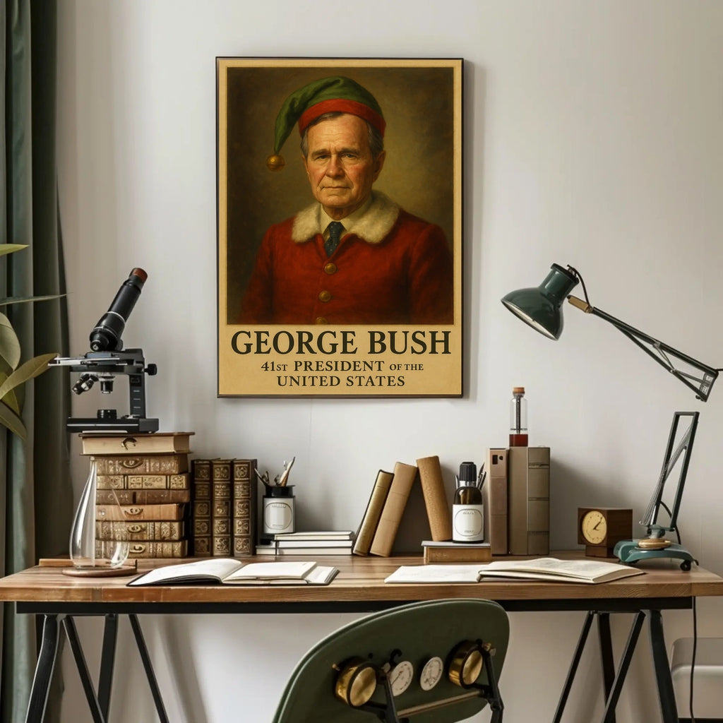Infuse your space with a conversation-starting blend of history and holiday whimsy—a George Bush art piece that doubles as presidential decor and funny holiday poster.