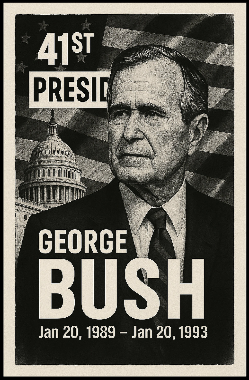 Printed with precision and made to inspire, this artwork is more than decoration—it’s a conversation piece that connects history, culture, and style. Bring George H. W. Bush 41st President of the United States into your home, classroom, or office in the USA today and let your walls tell a powerful story.
