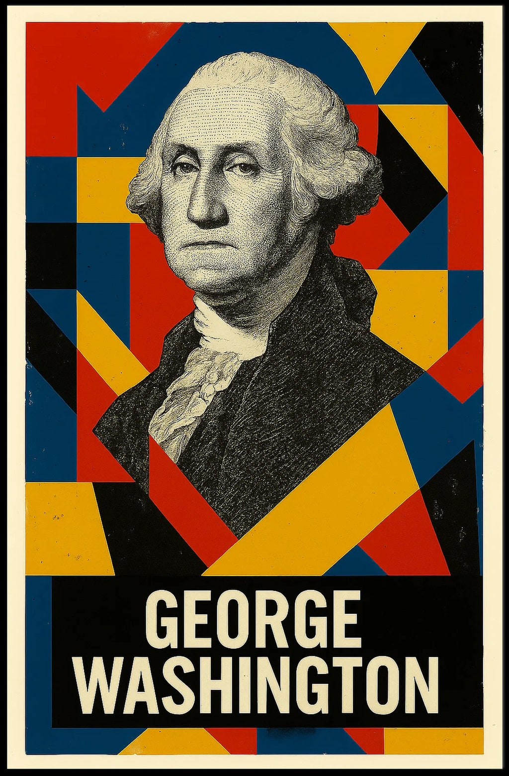 Poster featuring George Washington, the first President of the United States, for wall display in homes or offices.