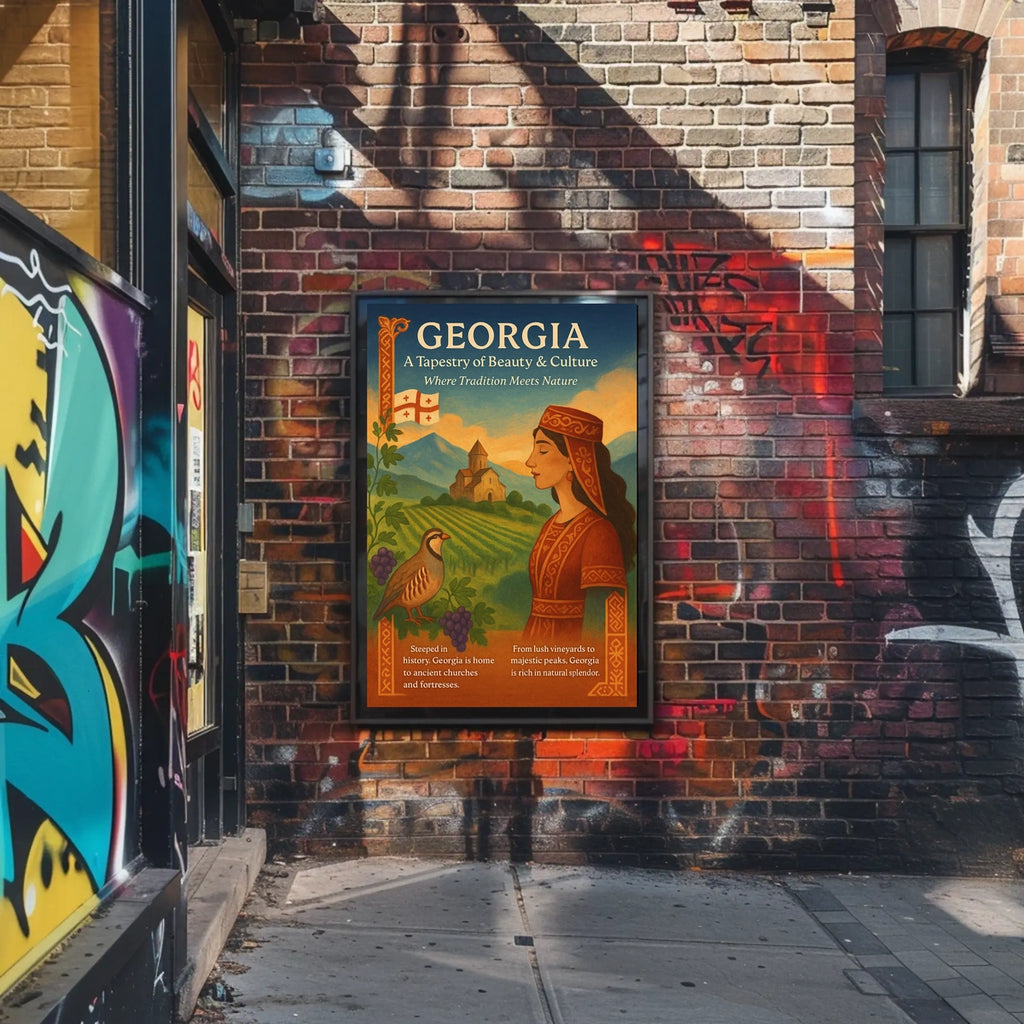 Celebrate the beauty of Georgia A Tapestry Of Beauty Culture Poster with this timeless wall art. Designed to capture its unique appeal, this piece is perfect for collectors, enthusiasts, or anyone who wants to bring meaning and inspiration into their space. This art poster draws on real-world scenery to add charm to any room and celebrate the tapestry of culture and beauty.