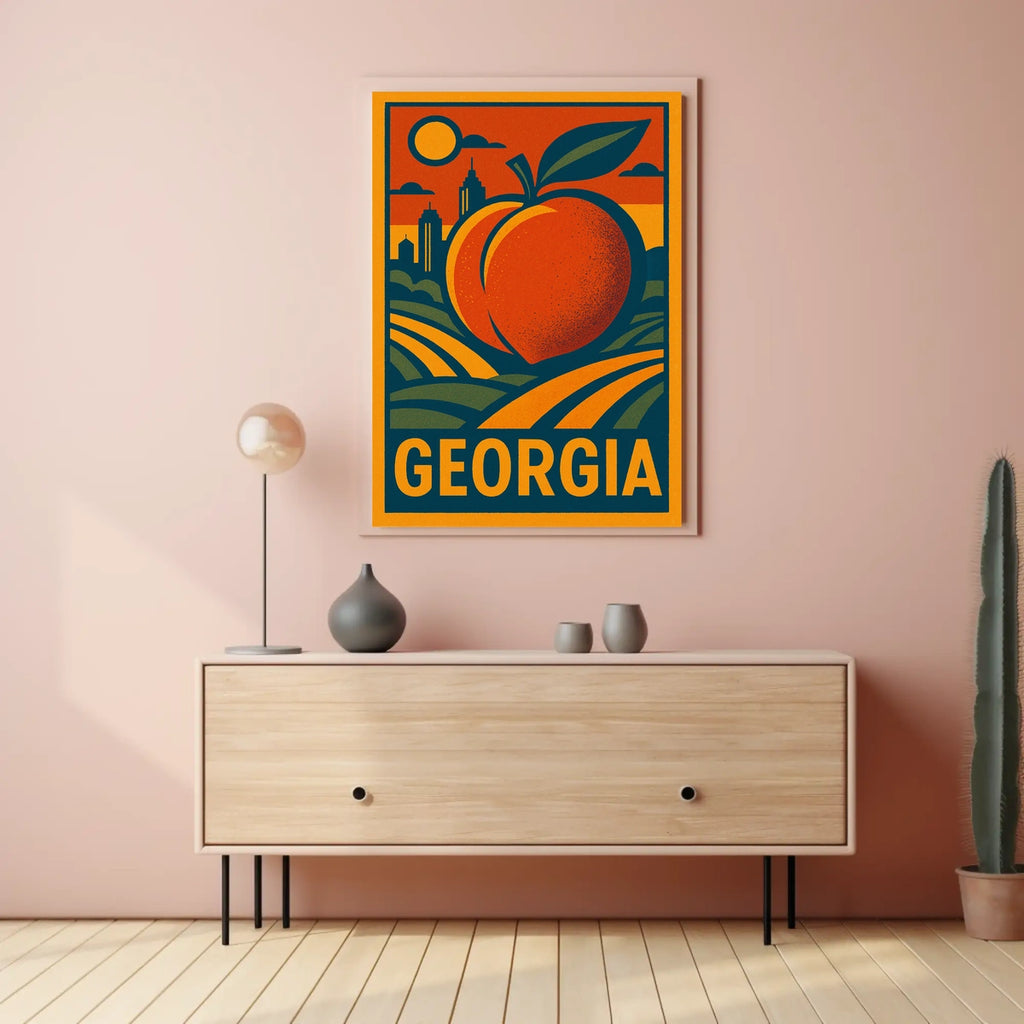 Designed for decor lovers and wanderlust spirits, this art print adds charm to any room with visuals inspired by real-world scenery. The Georgia Peach Poster captures the essence of charming landscapes and peach tones that echo the southern charm of Georgia.