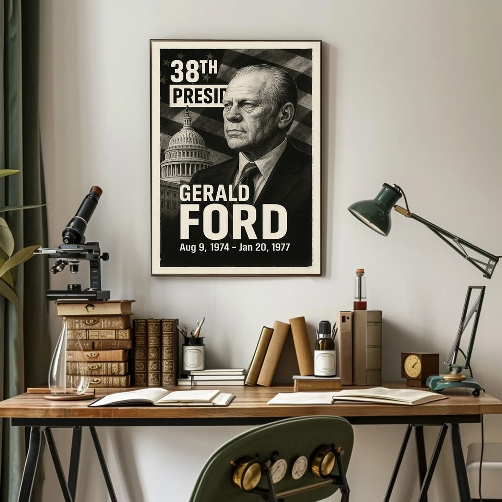 Printed with precision and made to inspire, this artwork is more than decoration—it’s a conversation piece that connects history, culture, and style. Bring Gerald Ford 38th President of the United States Digital Montaje Poster into your home, classroom, or office today and let your walls tell a powerful story.