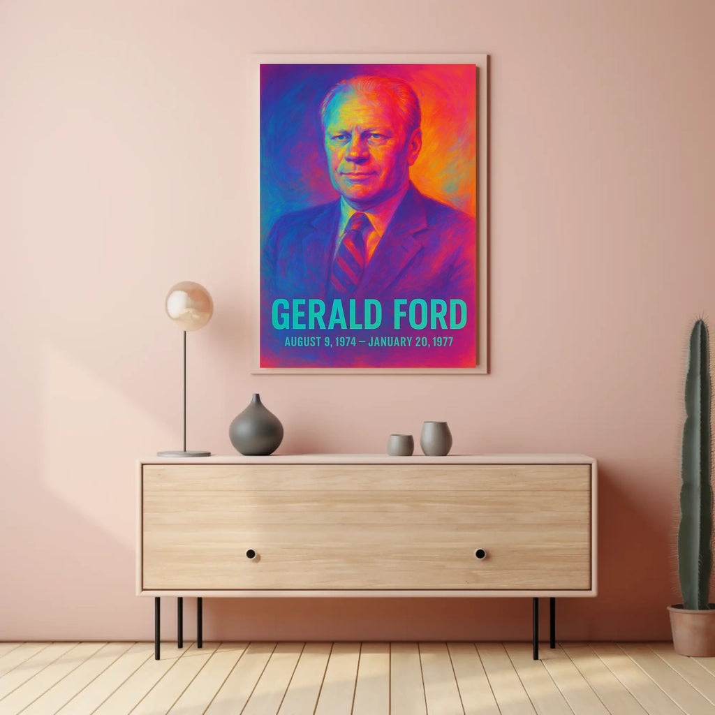 Gerald Ford 38th President of the United States Neon Gradient Overlay Poster