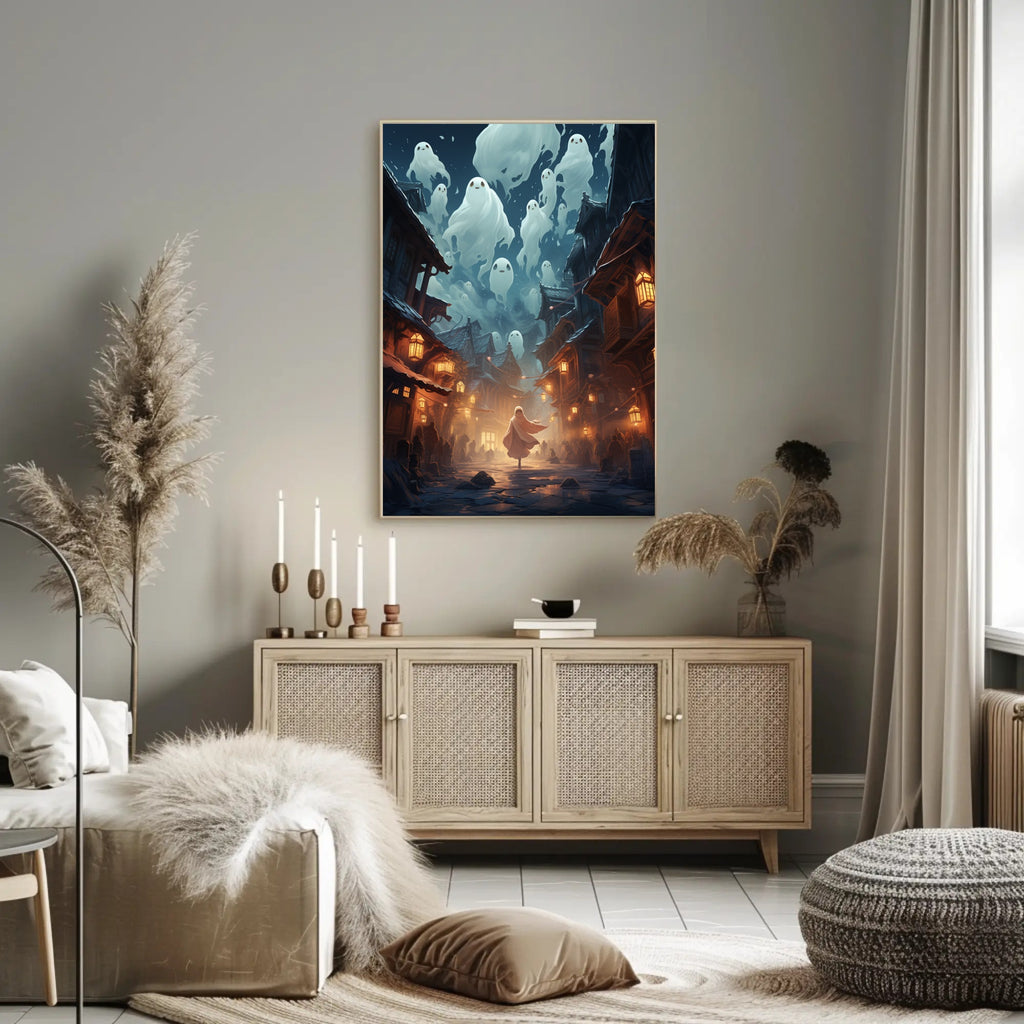 Elevate your home decor with the Ghostly Night In The Village Poster. This captivating piece not only enhances your space but also serves as an ideal gift for those who cherish artistic expressions. Don't miss out—add it to your collection today!