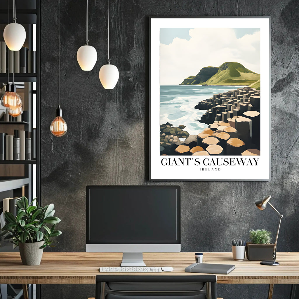 This Giant's Causeway poster is an ideal focal piece for living rooms, hallways, or travel-themed spaces — it invites calm exploration and sparks conversation. Add a touch of scenic Ireland to your walls and celebrate one of the world's great natural wonders with a modern art print that fits effortlessly into contemporary décor.