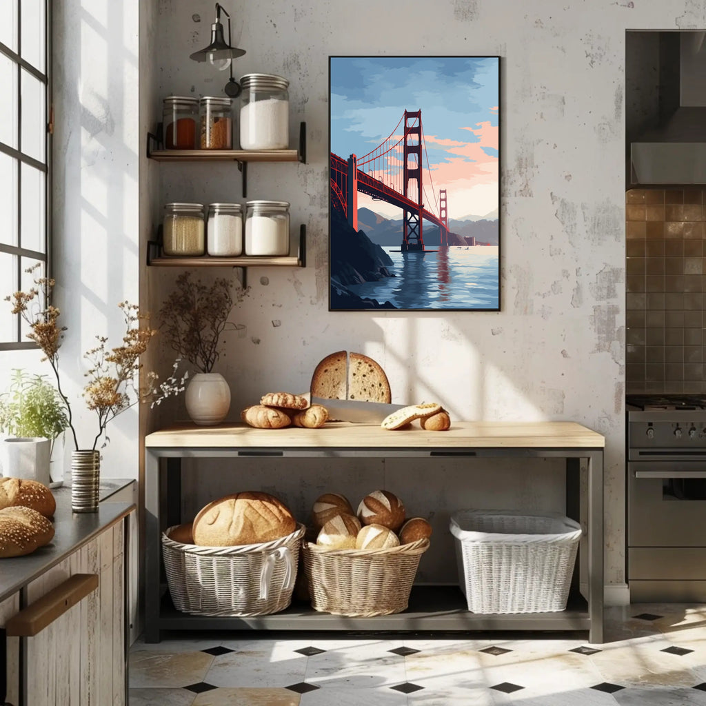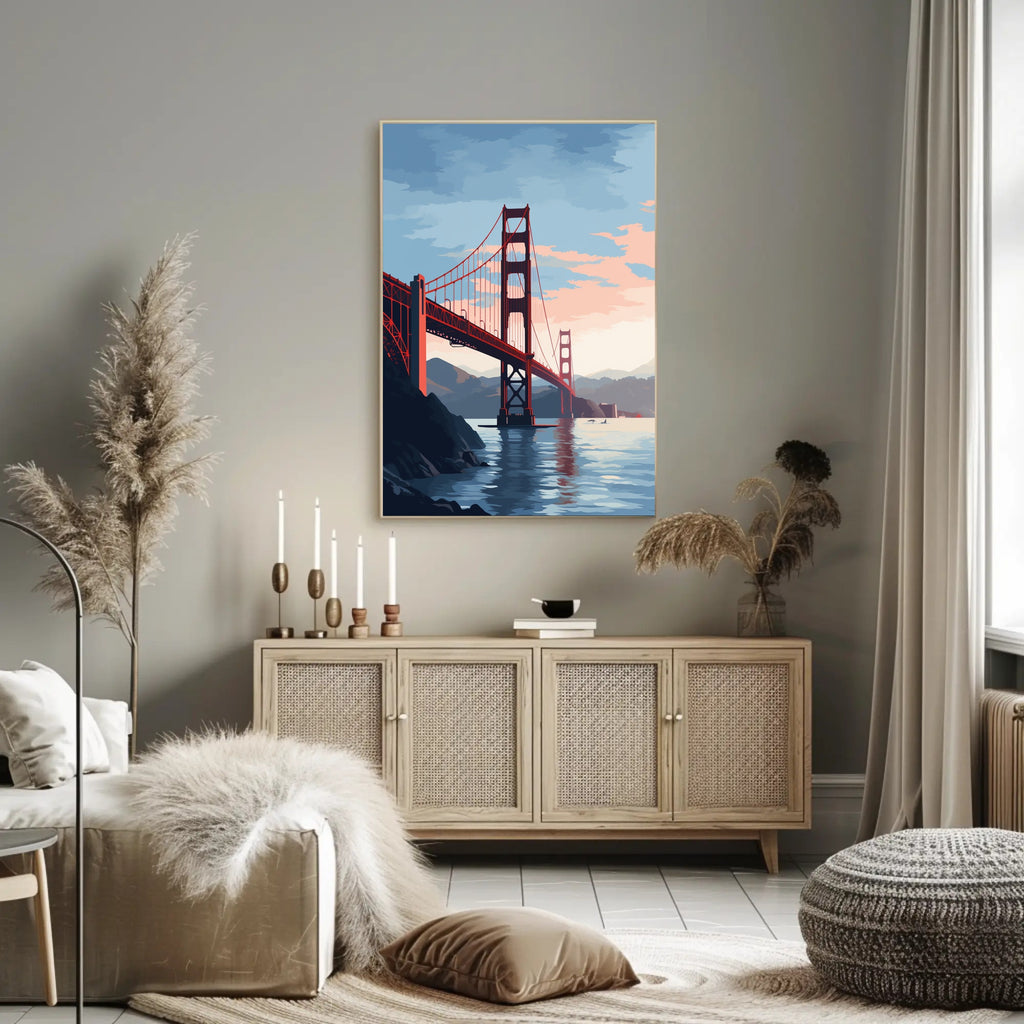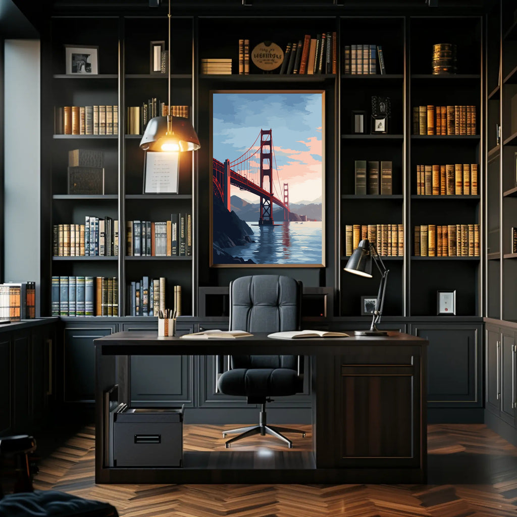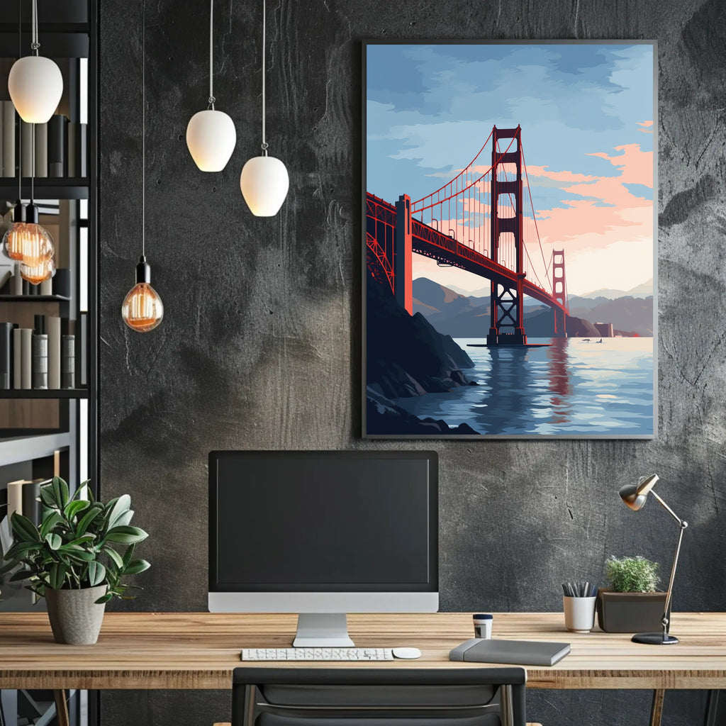 Elevate your decor with the Golden Gate Bridge At Sunset Poster and let its beauty inspire your daily life. Don’t miss out on this stunning piece of art; order yours today and bring the charm of the Golden Gate Bridge into your home!