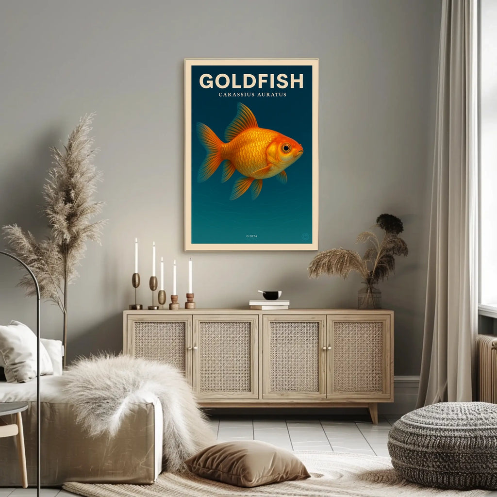 This poster captures the serene charm of Goldfish Carassius Auratus, infusing any room with a touch of wanderlust and water-inspired calm. Perfect for living rooms, bedrooms, or workspaces, it serves as an inviting focal point that blends artistry with everyday ease.