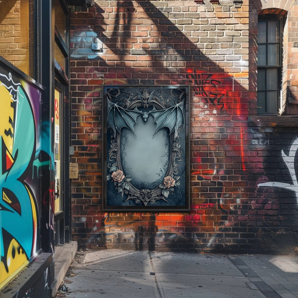 Unique Gothic Design: Features an intricate frame adorned with bats and roses, perfect for adding a touch of elegance and mystery to your walls.