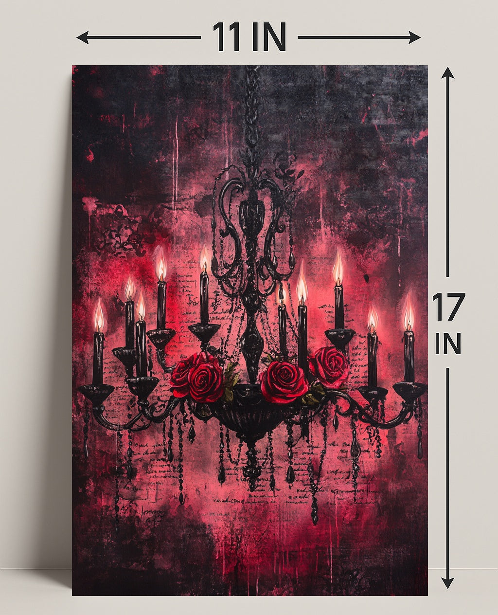 Striking Design: Featuring a gorgeous chandelier adorned with roses, this poster offers a dramatic focal point that elevates your home decor.