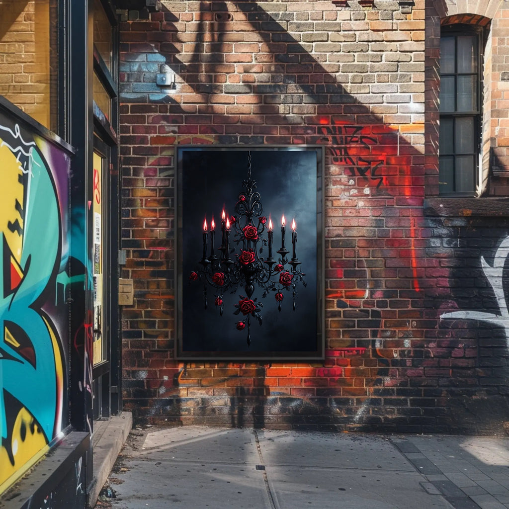 Premium print quality: Produced by PosterGoat with attention to color depth and detail to ensure the chandelier, wax drips, and rose petals pop from the wall.