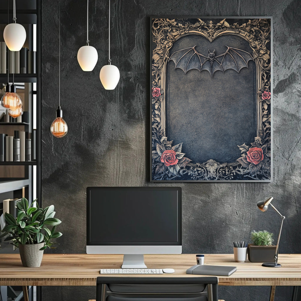 Striking Visuals: Featuring a bat motif surrounded by elegant roses, this poster is a feast for the eyes.