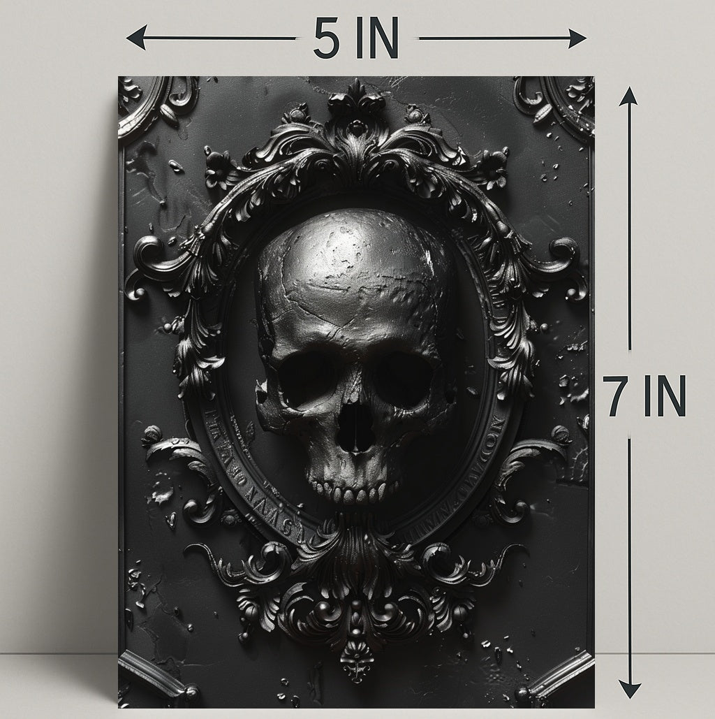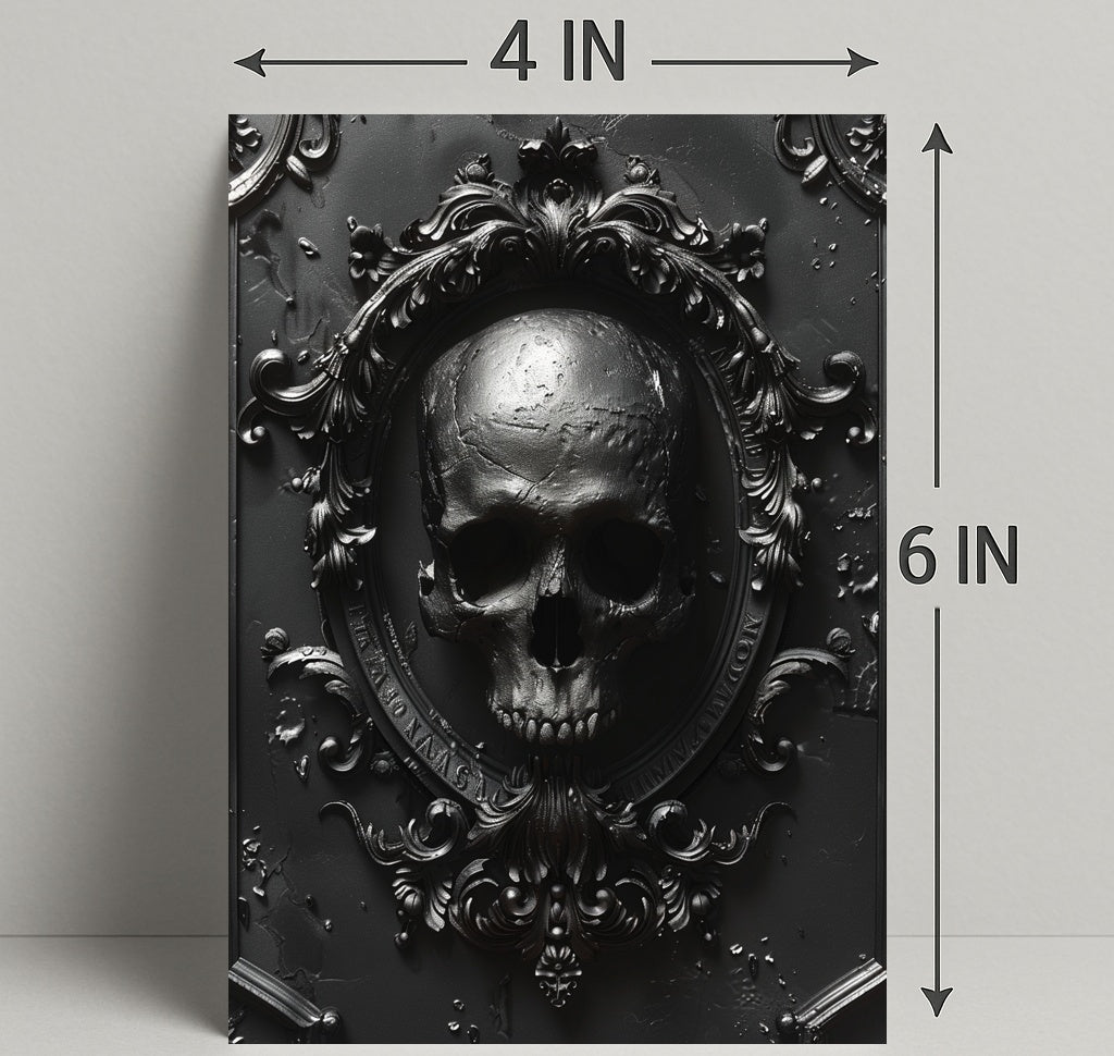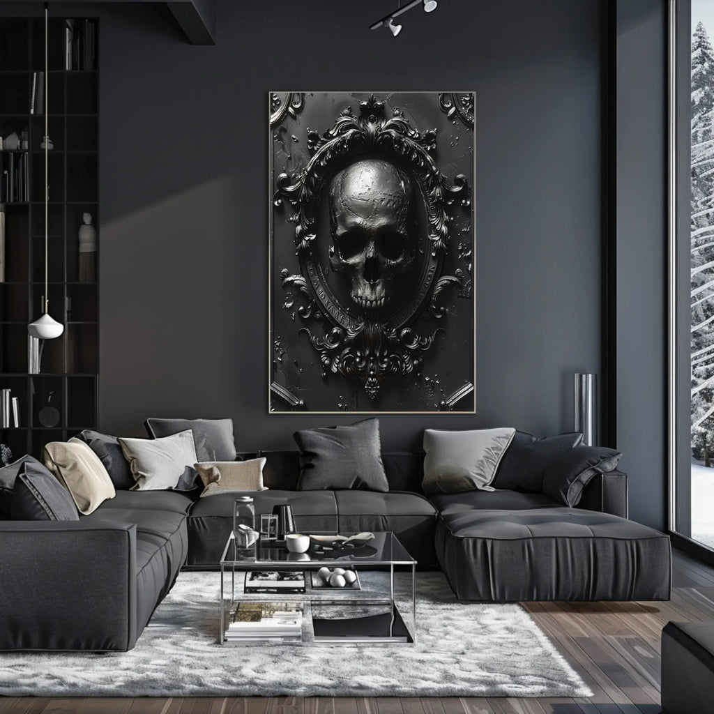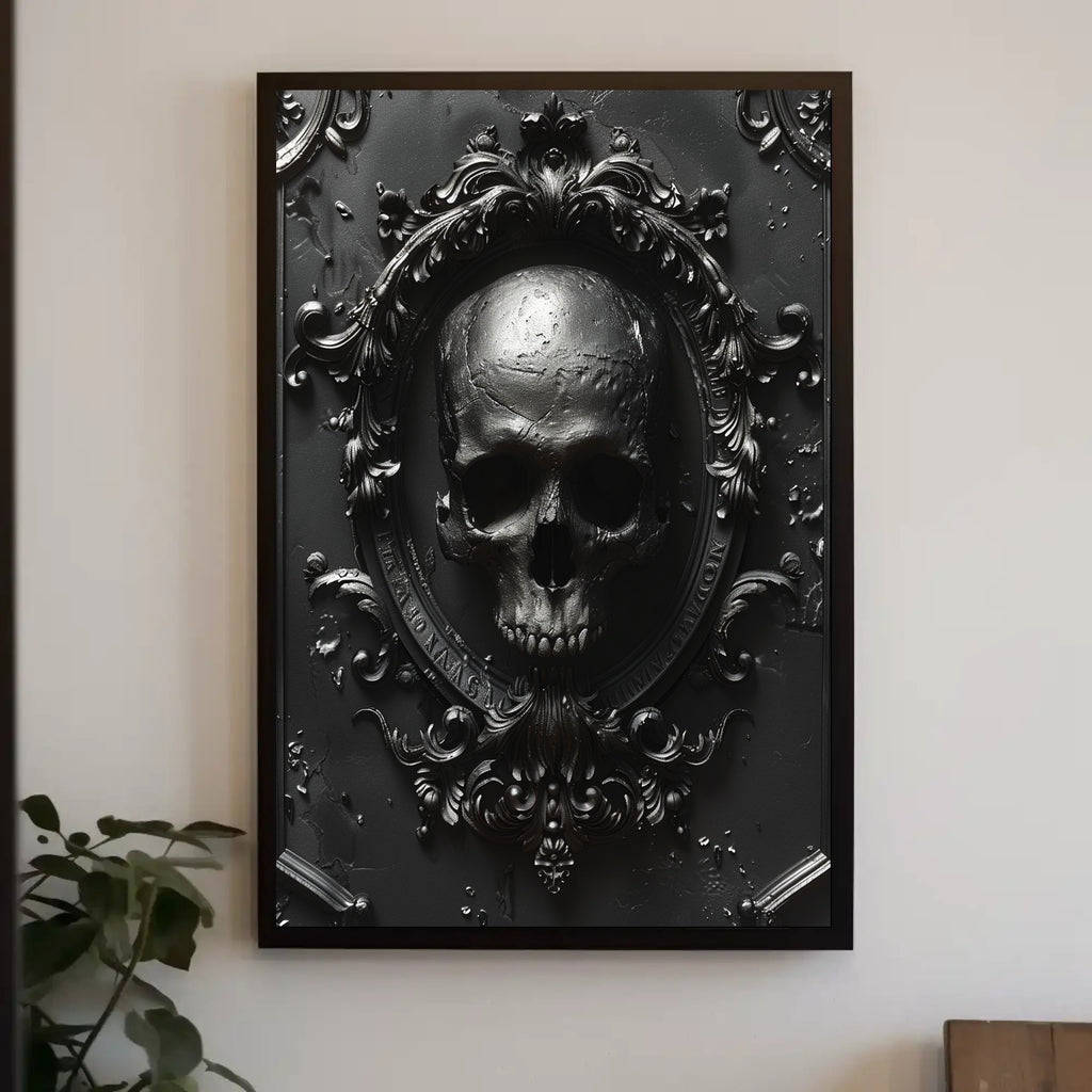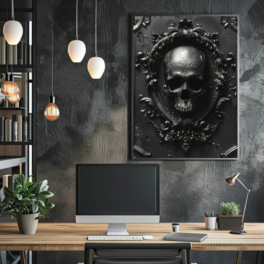 Intricate craftsmanship: High-contrast detailing captures the texture of the skull and ornate frame, delivering museum-quality impact at a fraction of the price.