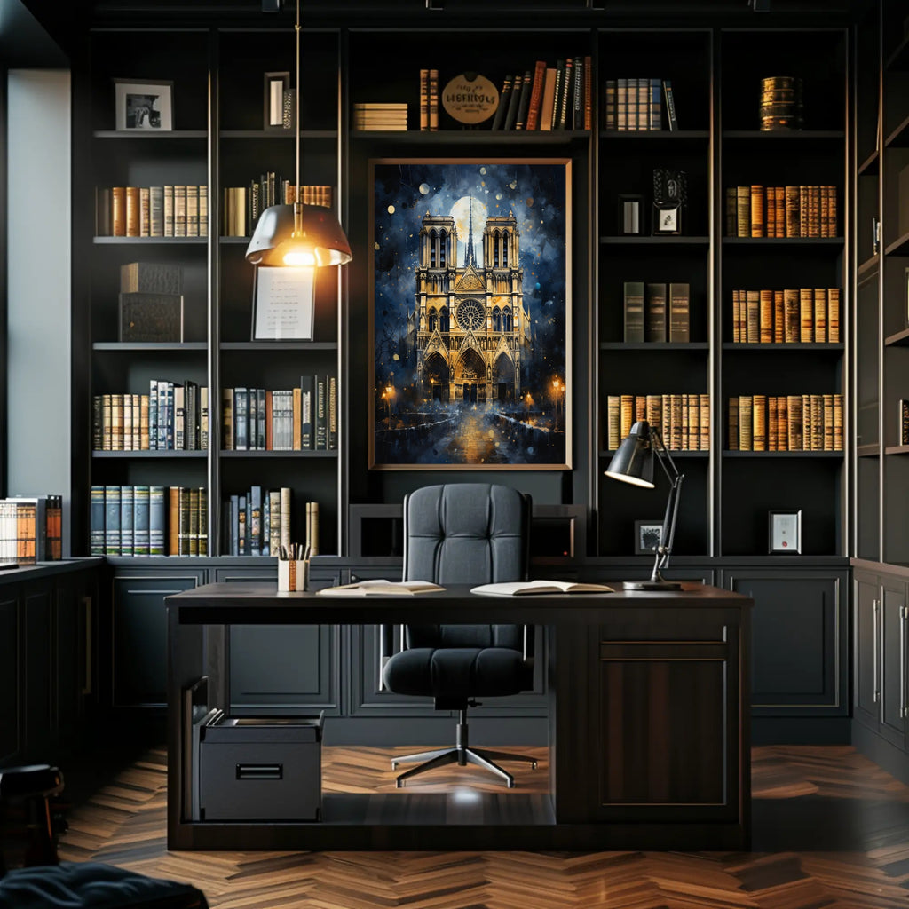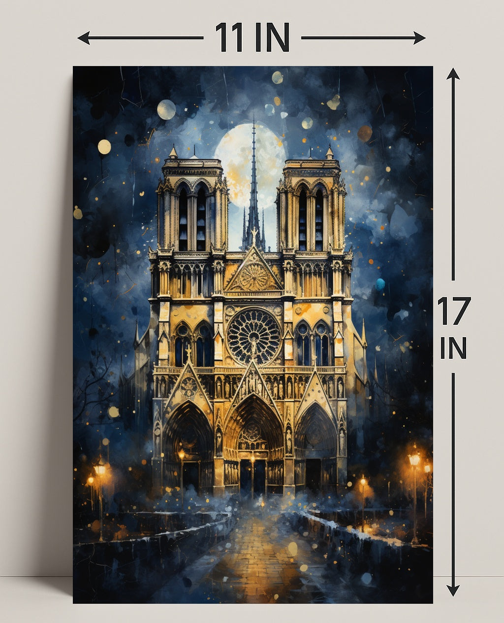 Transform your living space with the stunning Gothic Splendor Notre-Dame At Night Poster. This exquisite art print beautifully encapsulates the majestic allure of the iconic Notre-Dame Cathedral under a starlit sky. Perfect for decor enthusiasts and travelers alike, it brings a touch of elegance and sophistication to any room.