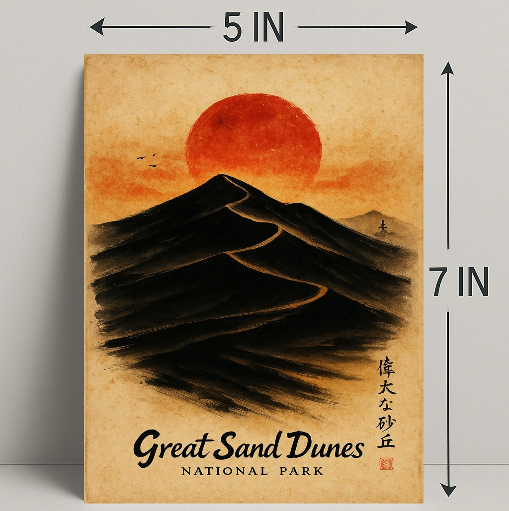 Transform your walls with a poster that blends nature, culture and minimalist design. Add the Great Sand Dunes Tranquil National Park Artistic Poster to your cart today and create a calm, captivating atmosphere in any space.