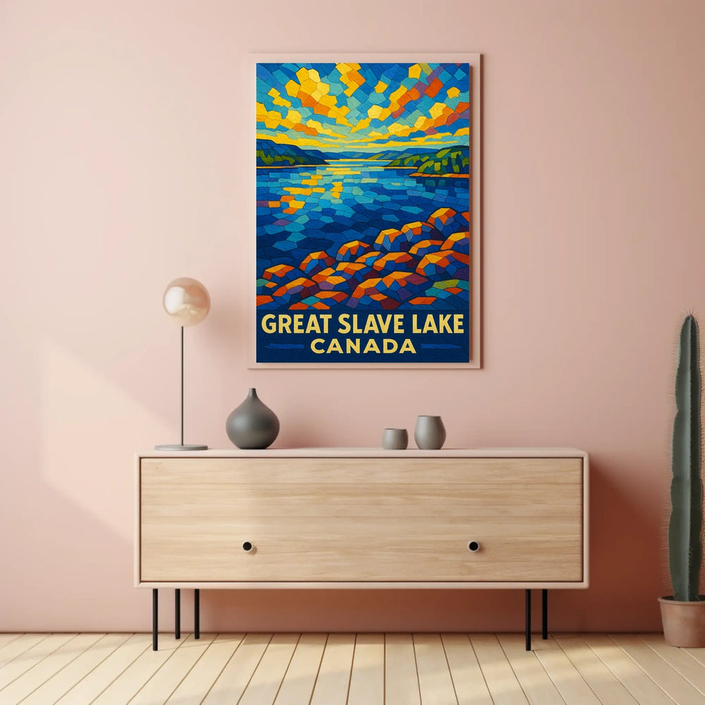 Whether you’re decorating a living room, a home office, or a classroom, this poster brings the vast northern landscape and serene waters of Great Slave Lake into your space. It’s crafted to inspire, celebrate travel, and elevate everyday interiors.