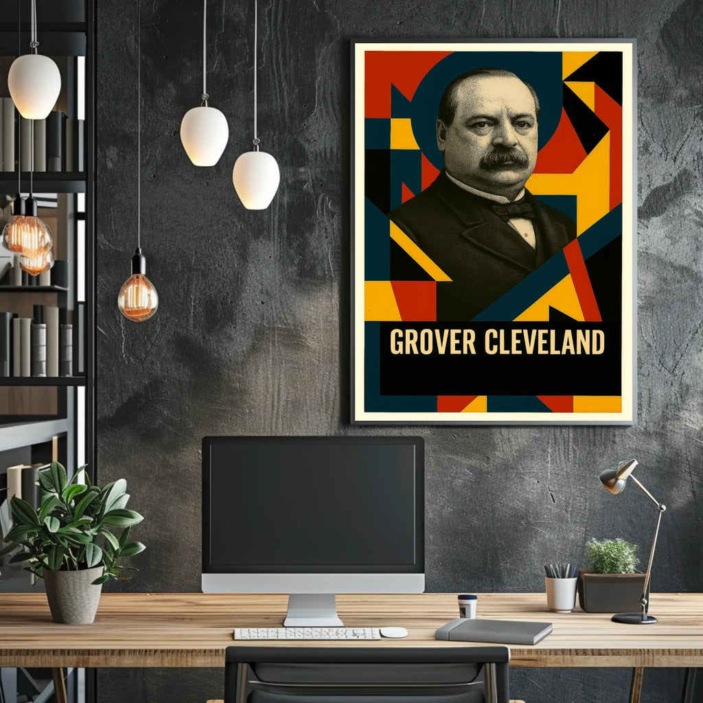 This poster presents Grover Cleveland, the 22nd president, in a pop design for wall display. It serves as history-inspired decor in homes, offices, or classrooms.
