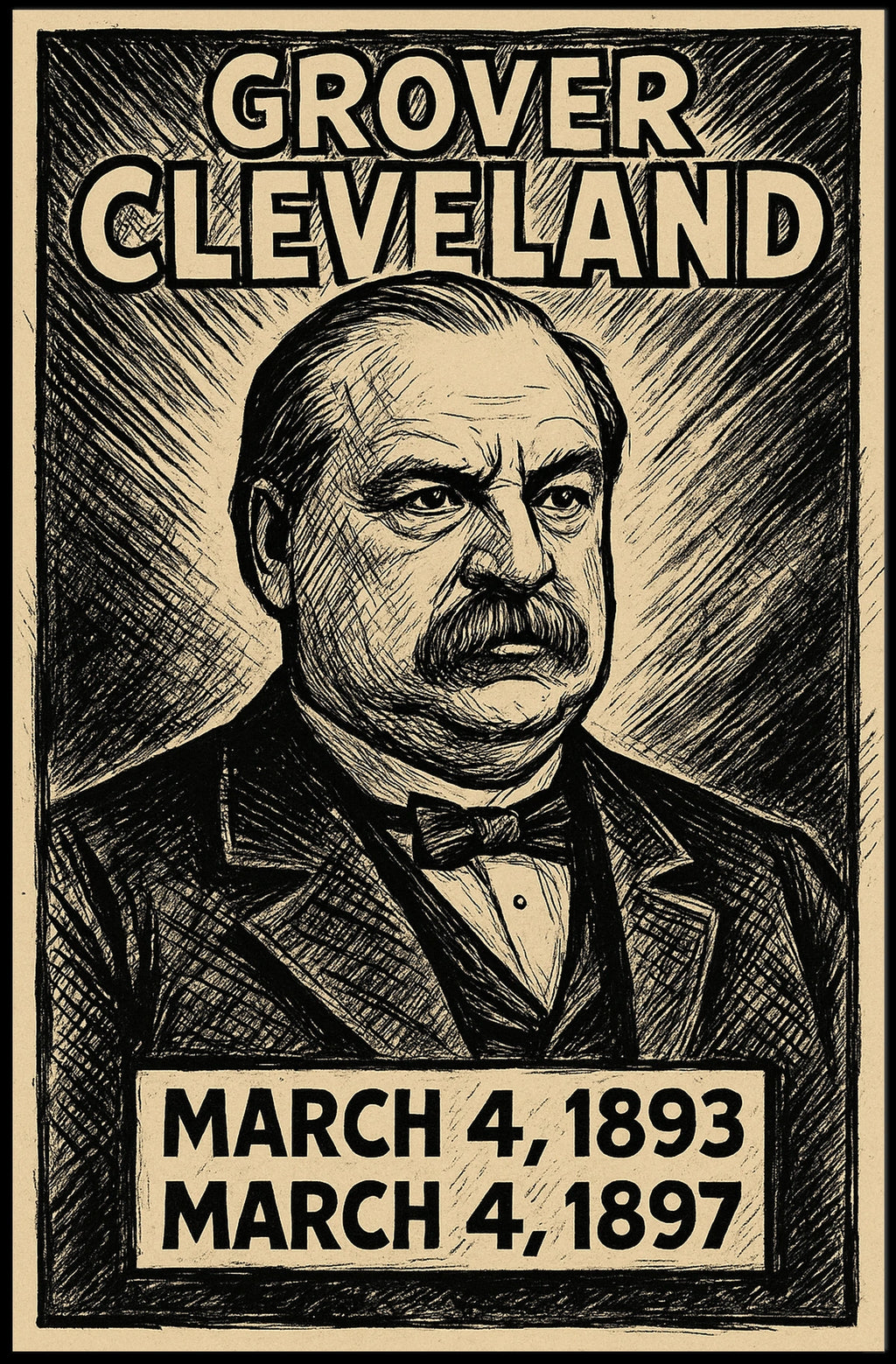 Celebrate a pivotal figure in American history with a bold, black-and-white comic sketch poster. This line-art piece blends heritage with a Retro 90s vibe, making Grover Cleveland, the 24th President, a striking focal point for any study, living room, or office wall.