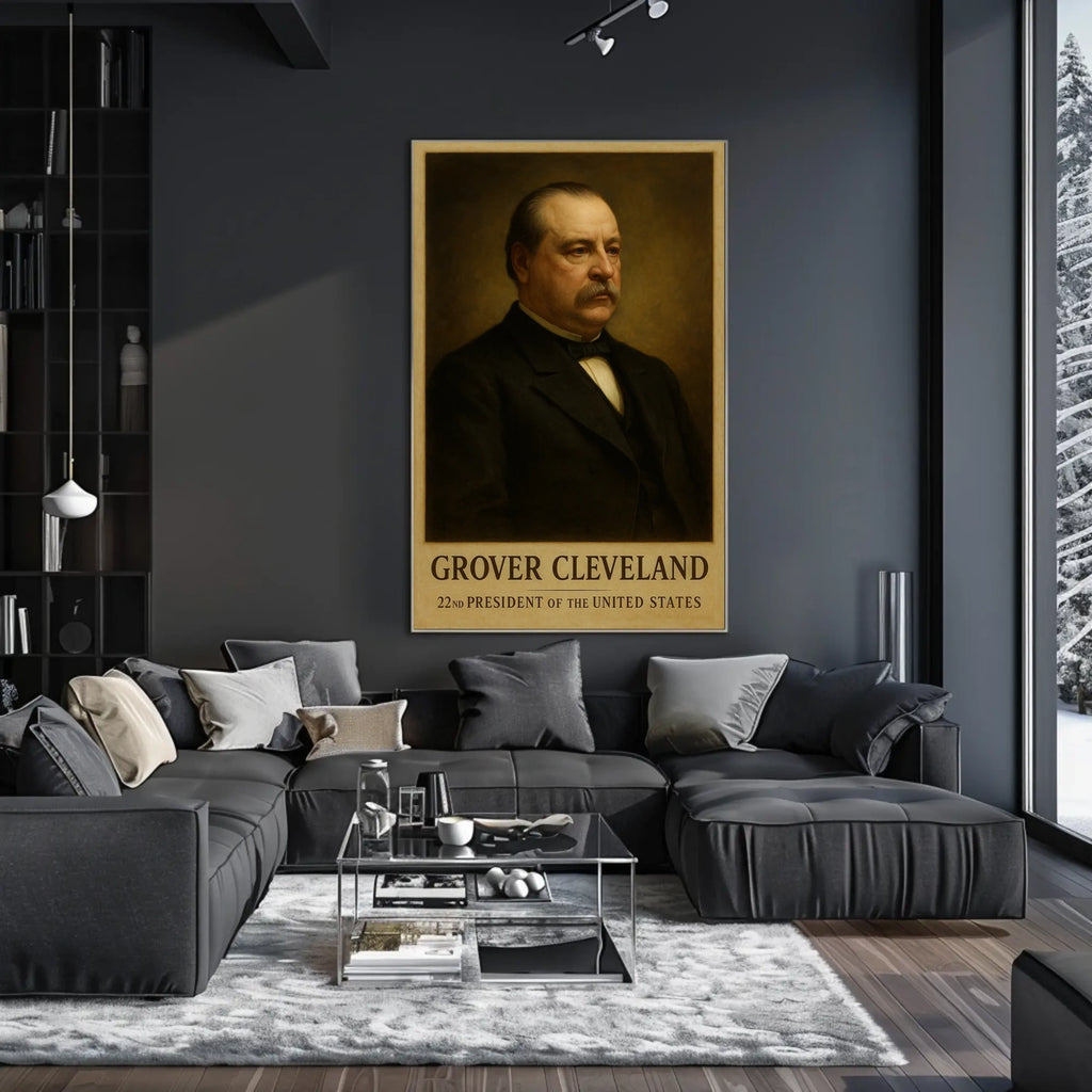 This poster vividly captures the dignified presence of Grover Cleveland, the 22nd President of the United States, in a stunning formal portrait. Exemplifying traditional realism, it transports the viewer back to the sophistication of late 19th to early 20th-century portraiture. Meticulous attention to detail and a timeless style make this piece perfect for history lovers and intellectual contexts, whether in study rooms or historical societies. Enhance your space with its stately charm and relive an era of refined political leadership through classical artistry.