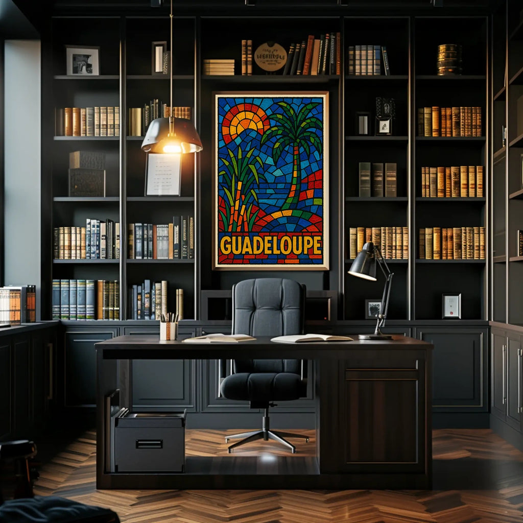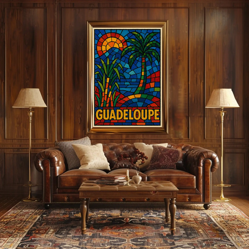 This poster captures the essence of Guadeloupe Mosaic Art. Designed for decor lovers and wanderlust spirits, this art print adds charm to any room with visuals inspired by real-world scenery.