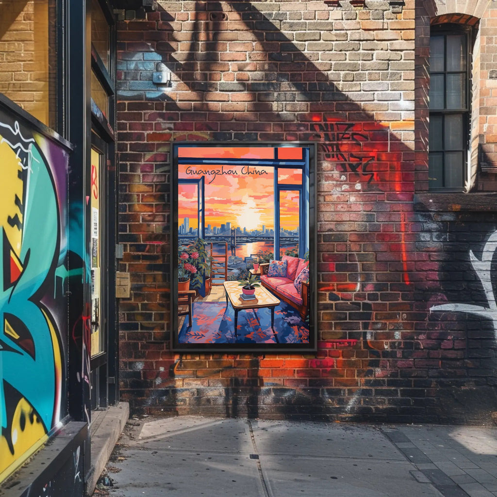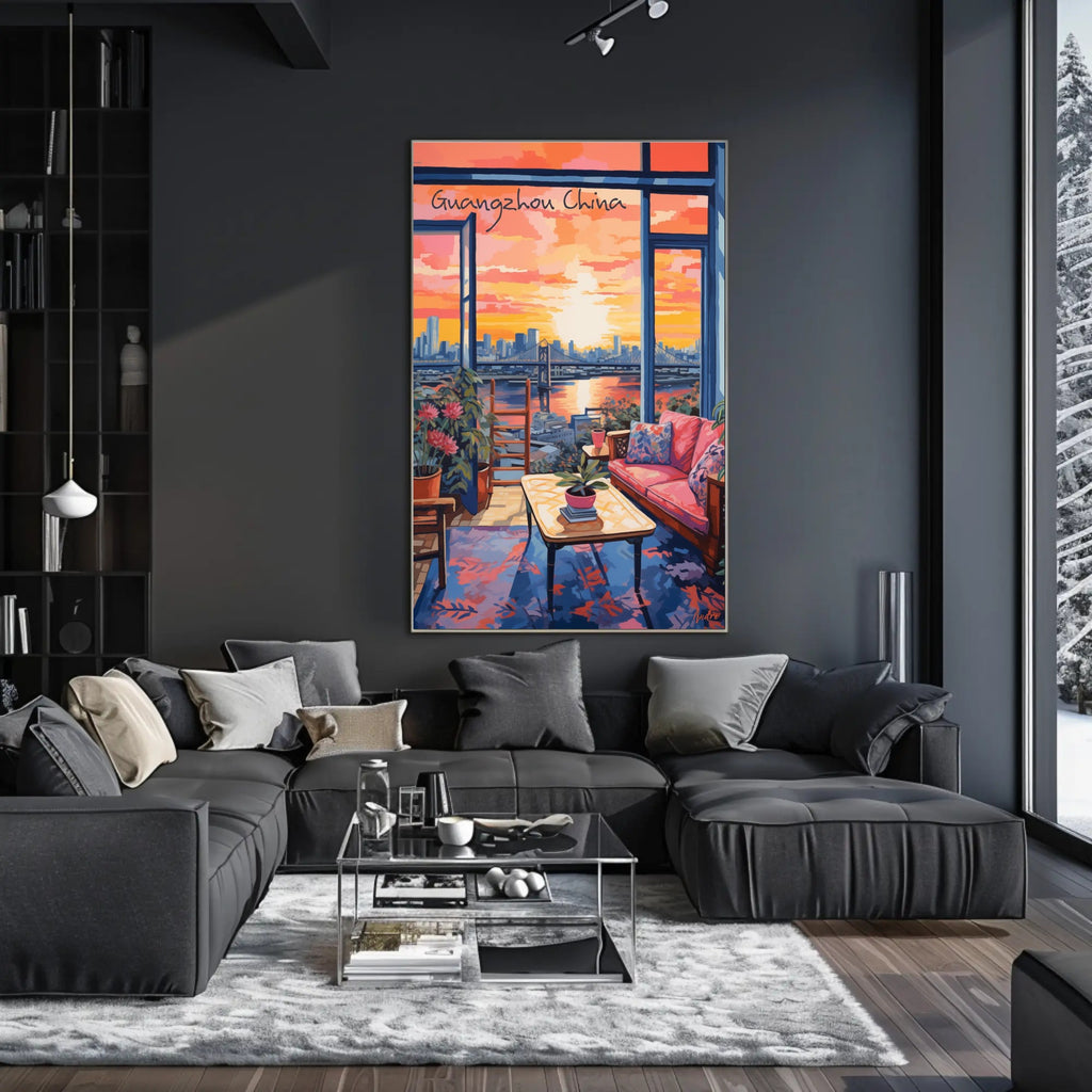Whether you’re decorating a modern apartment or adding warmth to a minimalist space, this Guangzhou Sunset Cityscape poster blends urban sophistication with cozy interior charm to create a focal point that sparks conversation and calm.