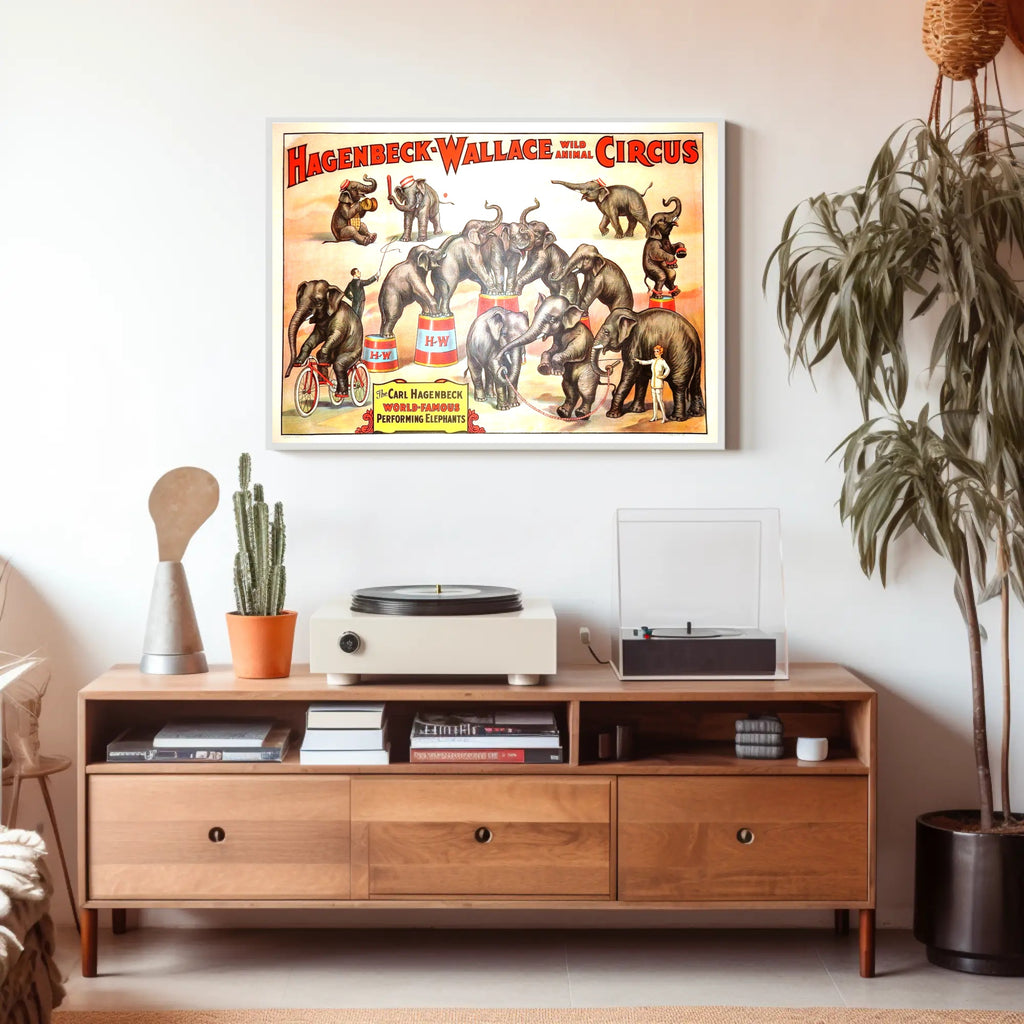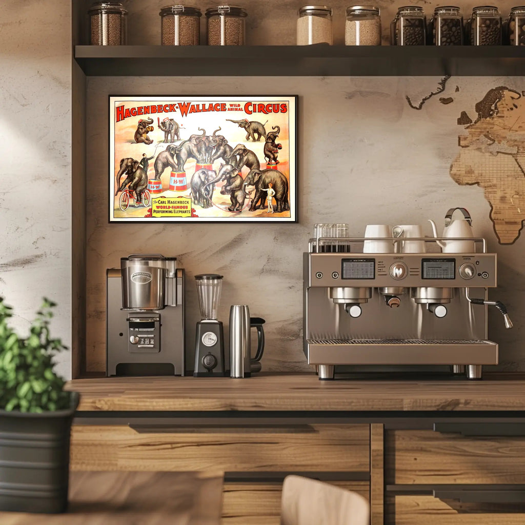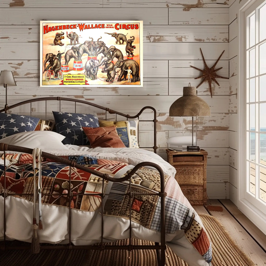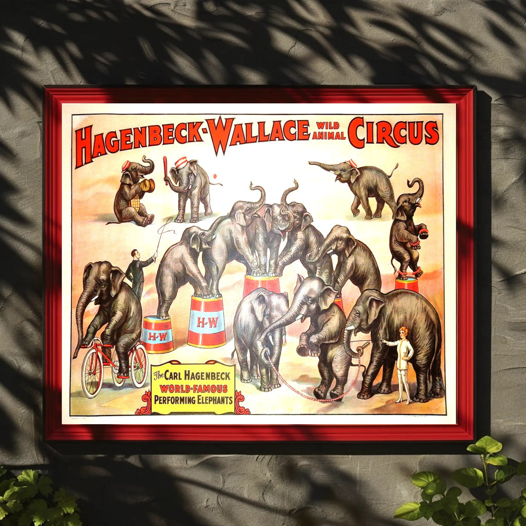 Perfect as a focal point over a sofa, above a coffee station, or in a gallery wall mix, this Hagenbeck-Wallace poster adds personality and storytelling to any room. Its playful composition and retro charm make it a standout piece for home decoration, offices, restaurants, and themed spaces.