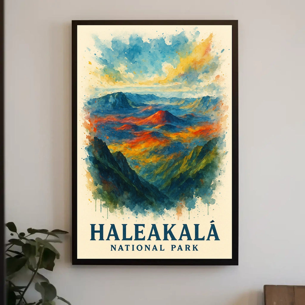 Bring the serene beauty of Haleakalā National Park into your living space with this vibrant watercolor poster—a timeless piece that complements any nature-inspired decor, from cozy living rooms to tranquil offices.