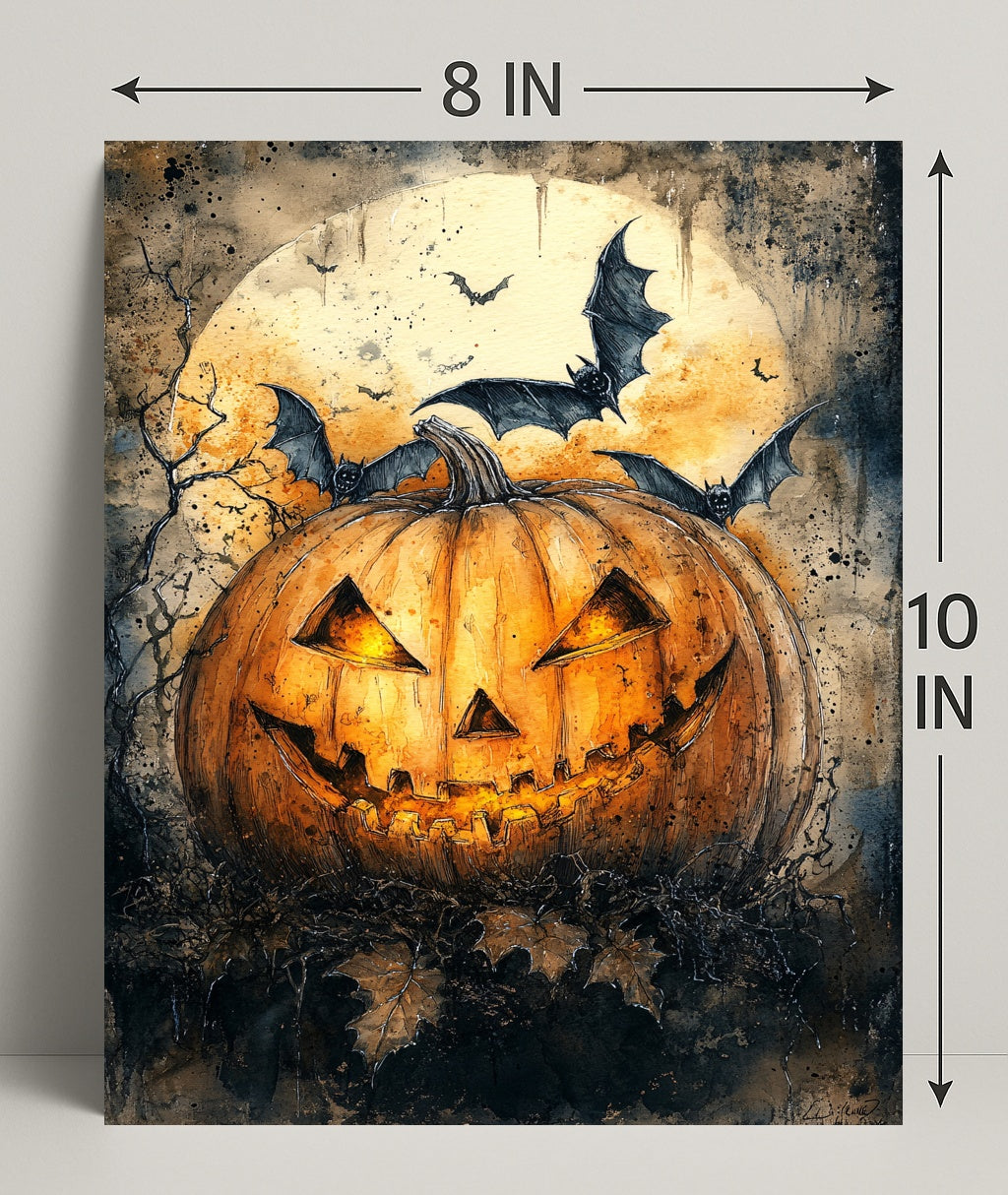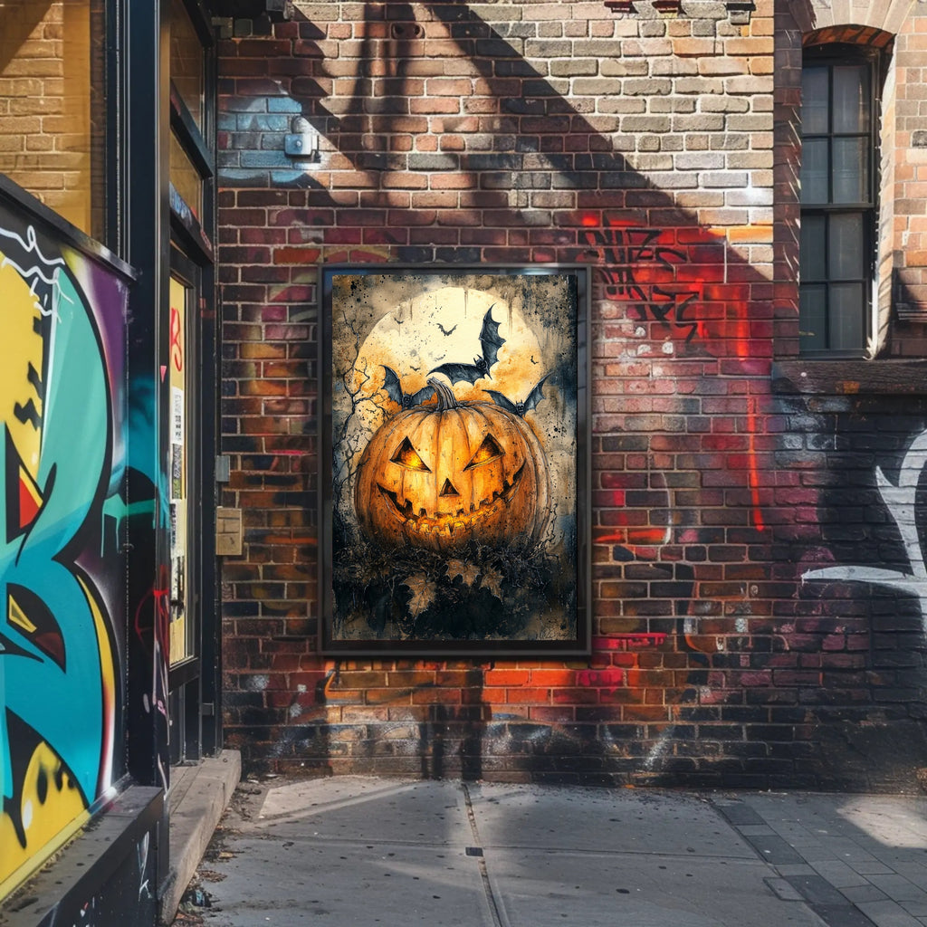 Hauntingly Beautiful Design: Featuring a mesmerizing pumpkin surrounded by bats, this poster captures the quintessential Halloween vibe, making it a must-have for any festive decor.