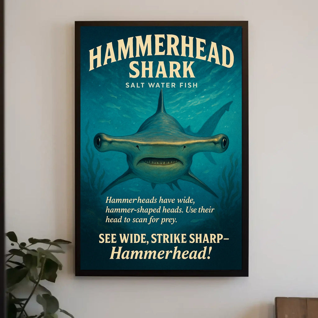 Bring the ocean into your space with this Hammerhead Shark Saltwater Predator poster. It’s simple, stylish art that pairs a striking hammerhead silhouette with scenic saltwater vibes. Designed for decor lovers and wanderers alike, this print fits living rooms, bedrooms, or home offices, adding a touch of nature without shouting for attention. The look blends photography realism with a hint of digital painting for a modern, museum-ready feel and slides nicely into Home & Garden decor in the Posters category.