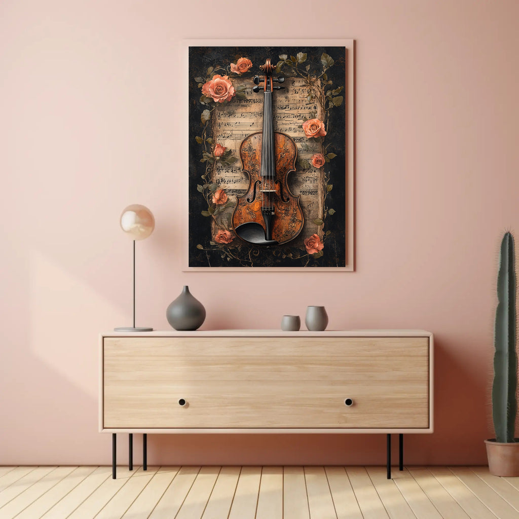 This high-resolution wall poster is designed to be a visual centerpiece — whether hung above a console, in a living room vignette, or in a music room. Its warm palette and tactile-looking details invite viewers to linger and imagine the melody behind the image.