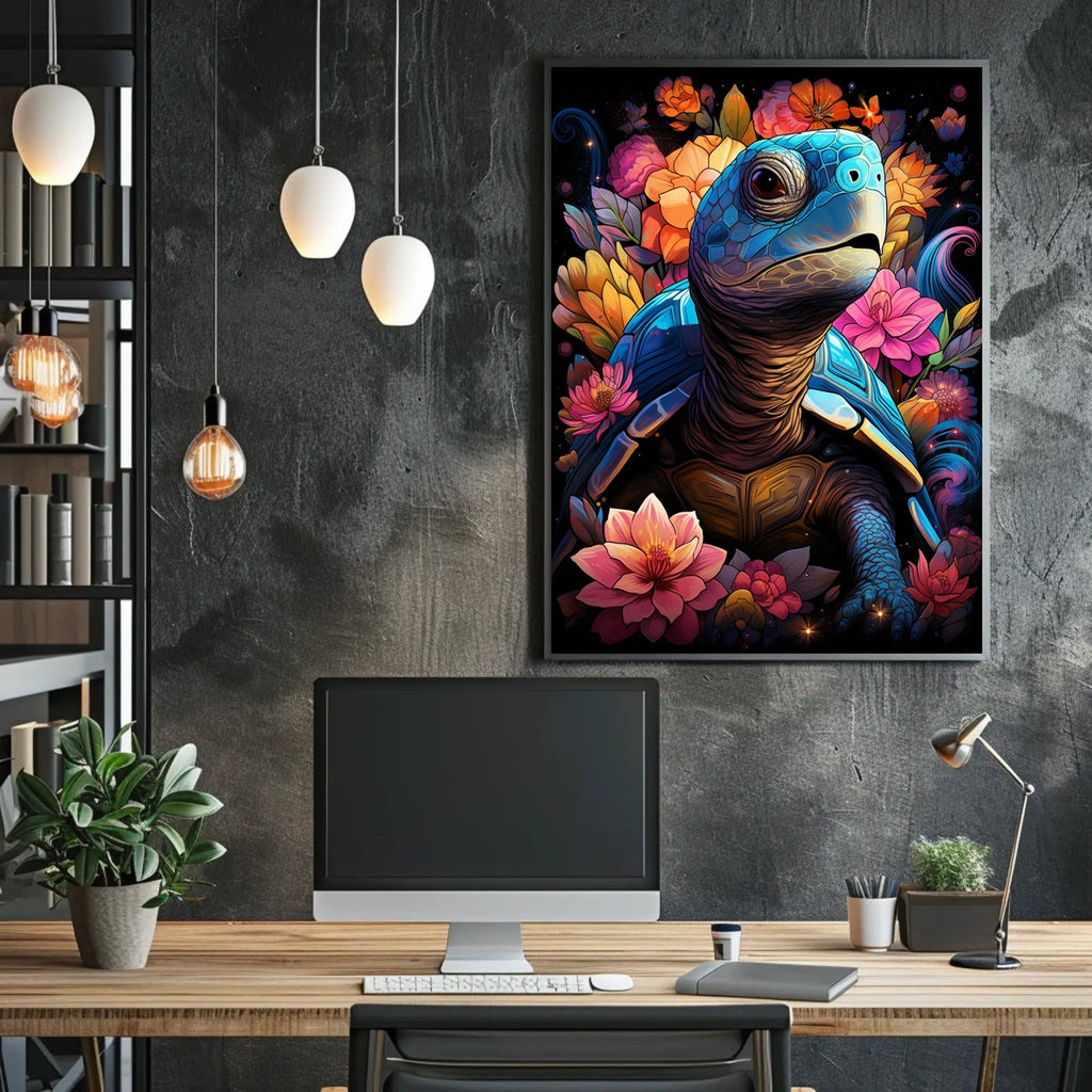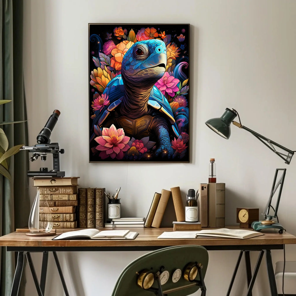 Harmony in Bloom delivers a distinctive nature-inspired statement piece that complements living spaces, bedrooms, or work areas. Embrace the serenity, celebrate balance, and invite tranquil beauty into your home—add this turtle art to your collection today.