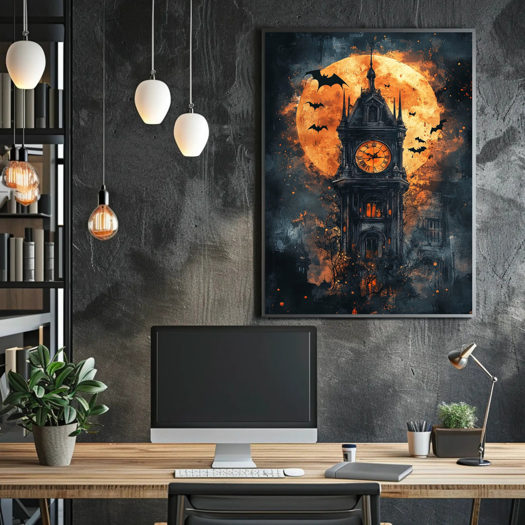 Elevate your space with a touch of the macabre — add the Haunted Clock Tower Poster to your cart now and transform your walls into a moody masterpiece.