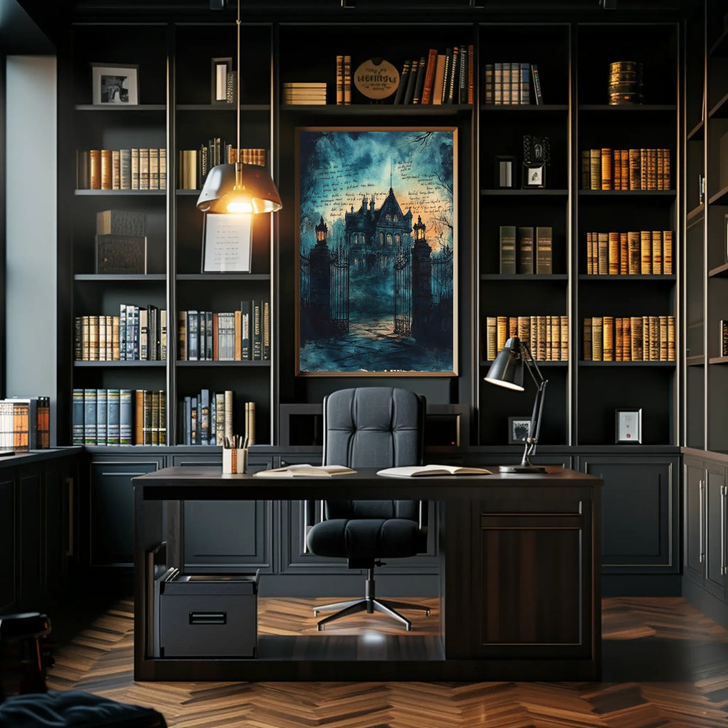 Frame it, hang it, and let the Haunted Manor At Dusk Poster transform your space with cinematic atmosphere and collectible style. Add to cart now and invite a touch of spooky elegance into your home.