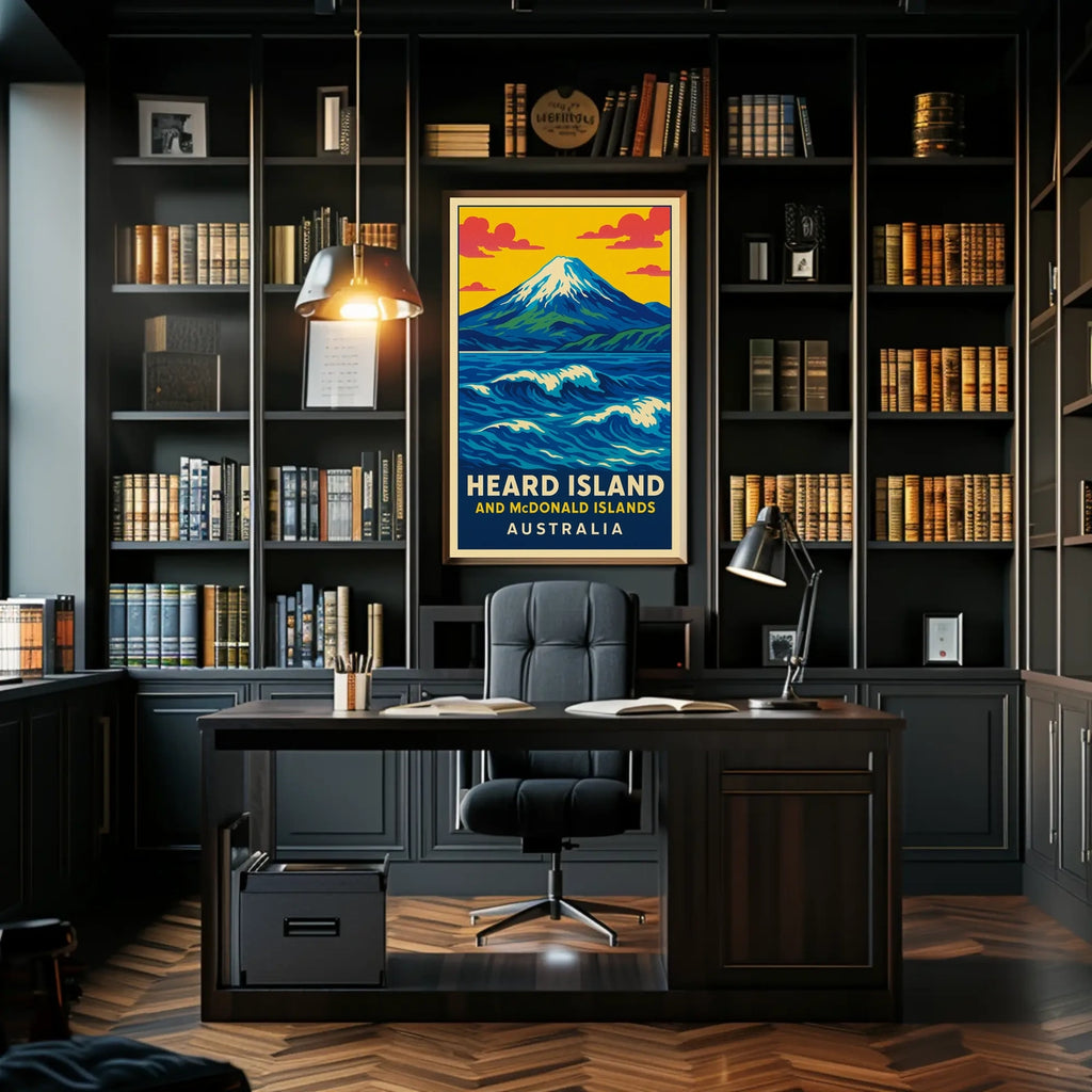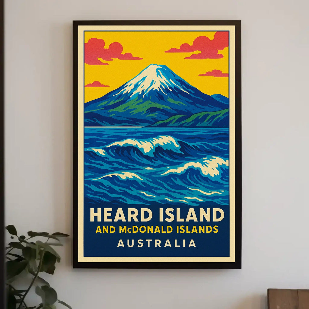 This poster captures the essence of Heard Island and McDonald Islands, Australia, bringing rugged beauty and remote scenery to your space.