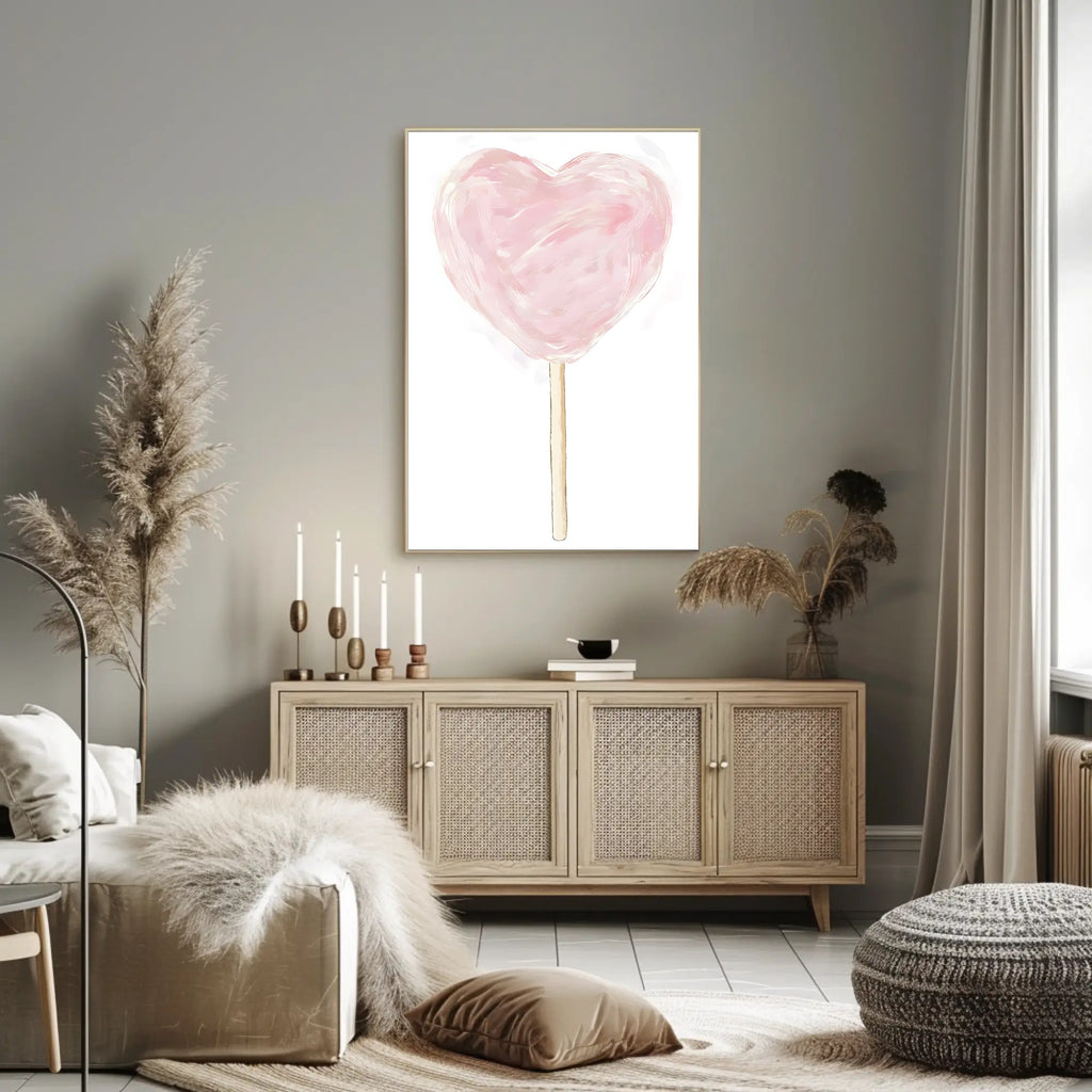 Bring a sweet dose of whimsy to your walls with the Heart Shaped Cotton Candy Poster from PosterGoat — a minimalist Pop Art print that transforms simple pastel strokes into a romantic, candy‑colored centerpiece.