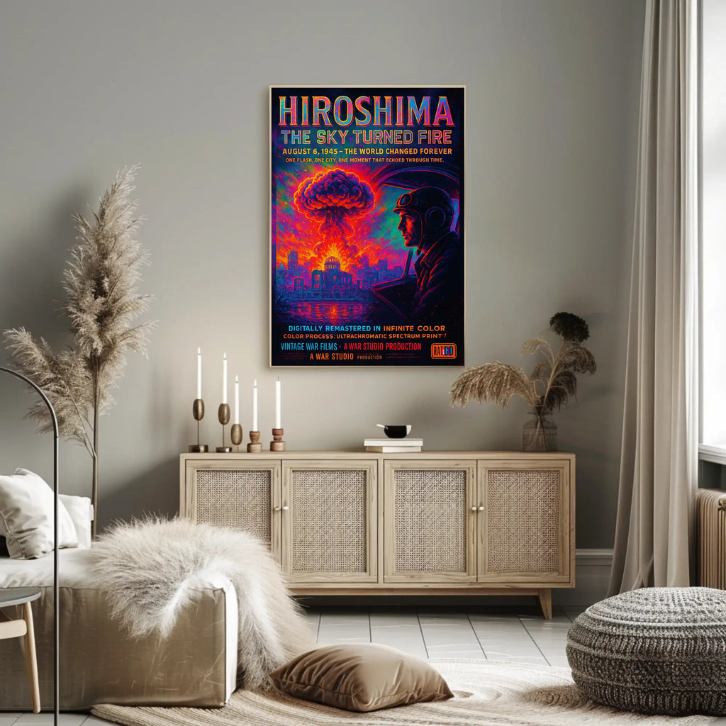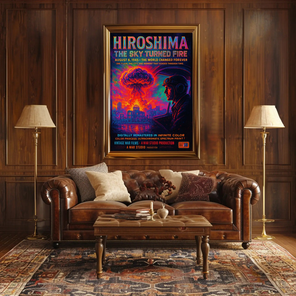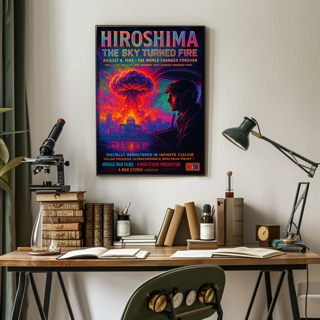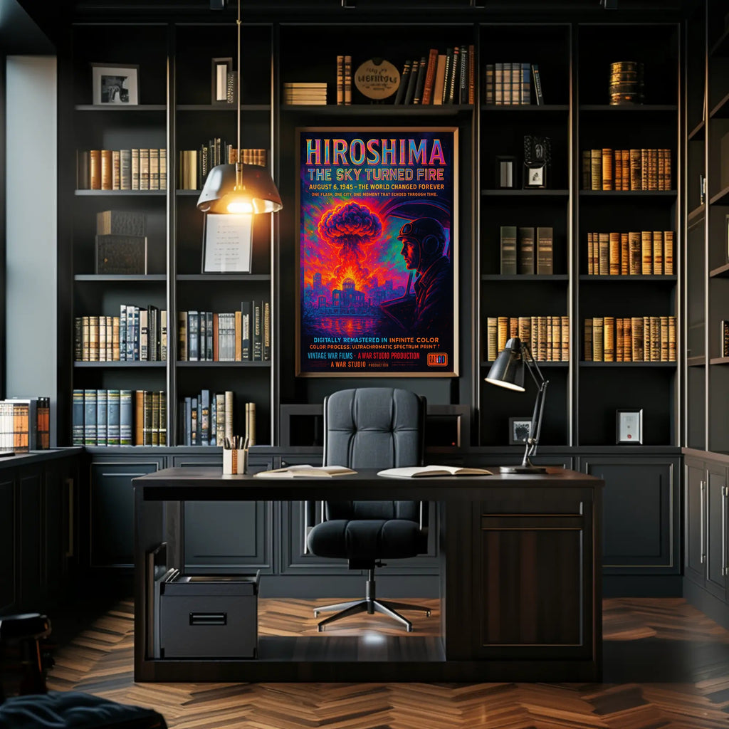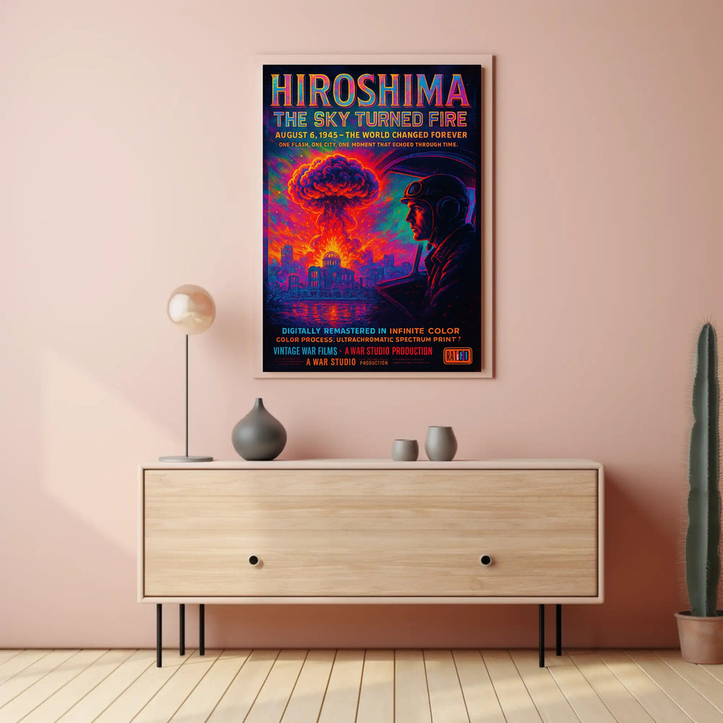 Why choose this print? The Hiroshima: The Sky Turned Fire Poster pairs historical significance with museum‑quality color processing to deliver a durable, visually arresting piece. Its minimalist yet cinematic style makes it versatile for modern and classic interiors while honoring the gravity of the subject matter.